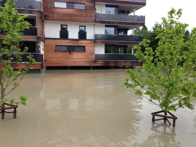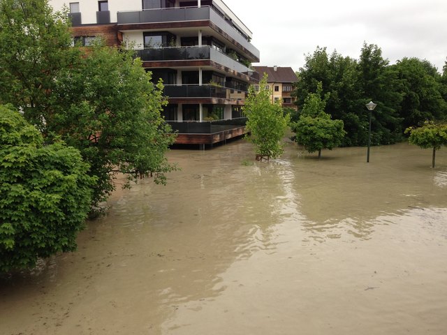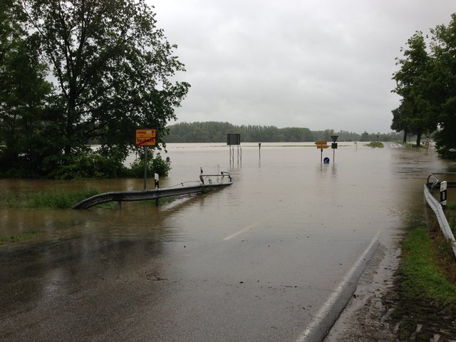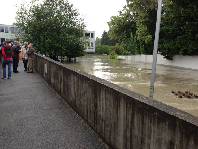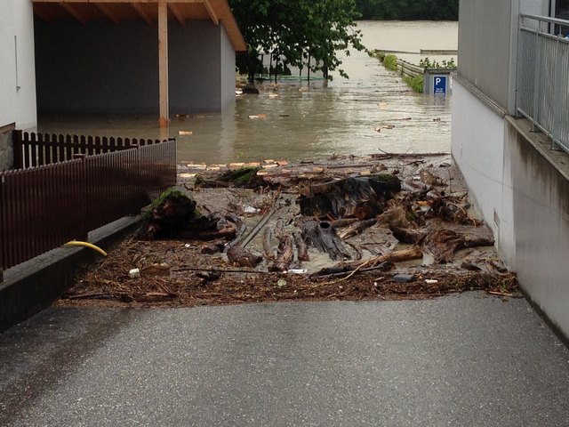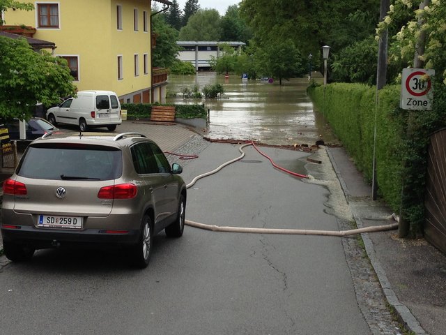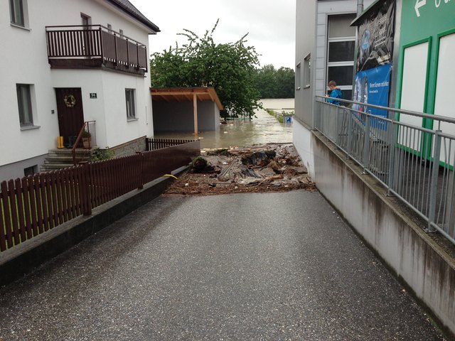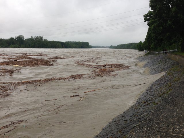 Nachdrückende Wassermassen, die aus Salzburg kommen verschärfen die Situation noch zusätzlich.