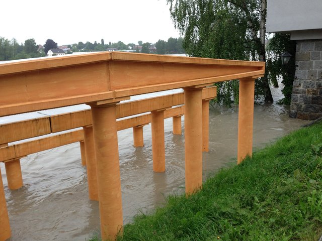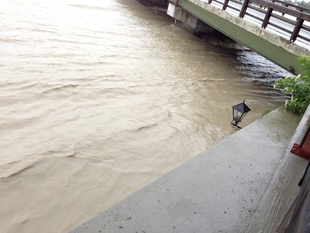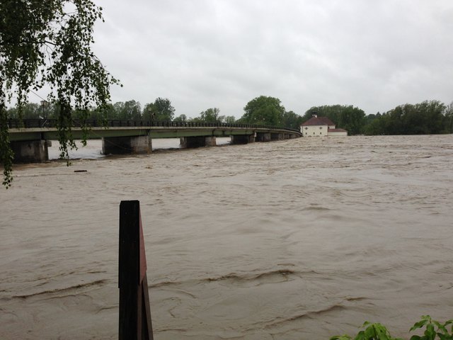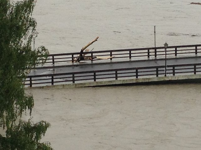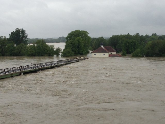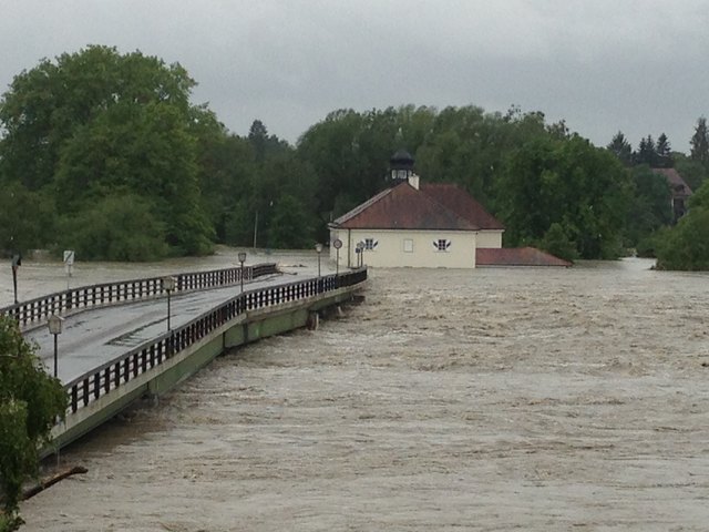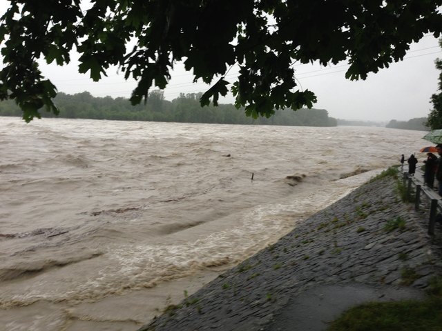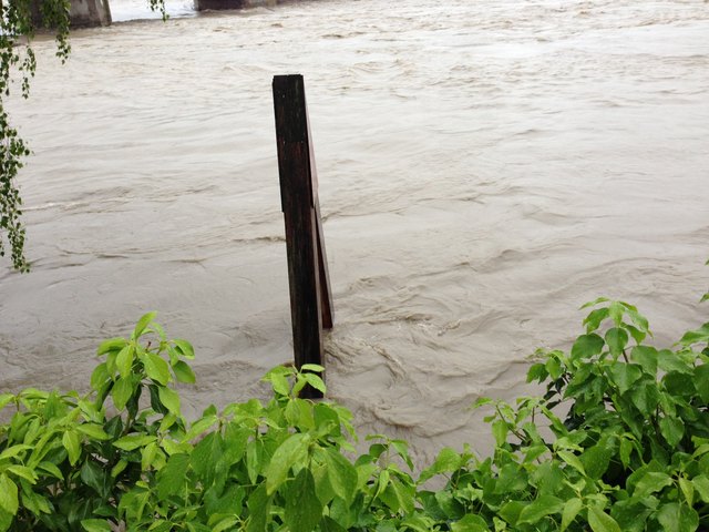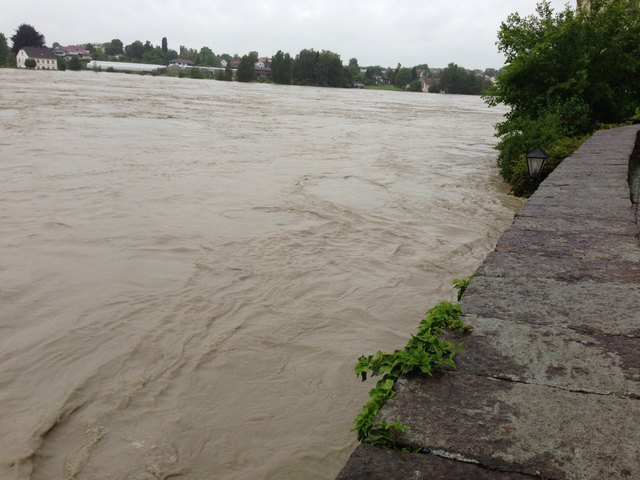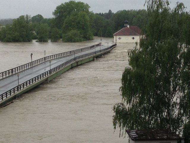 Endlich ist es so weit. Der Inn geht schön langsam wieder zurück. Pegelhöchststand war um ca. 17 Uhr mit 10,60m. Momentaner Stand ist 10,54m. Ist nur noch die Frage ob die alte Innbrücke den Wassermassen samt riesigen Baumstämmen stand hält.