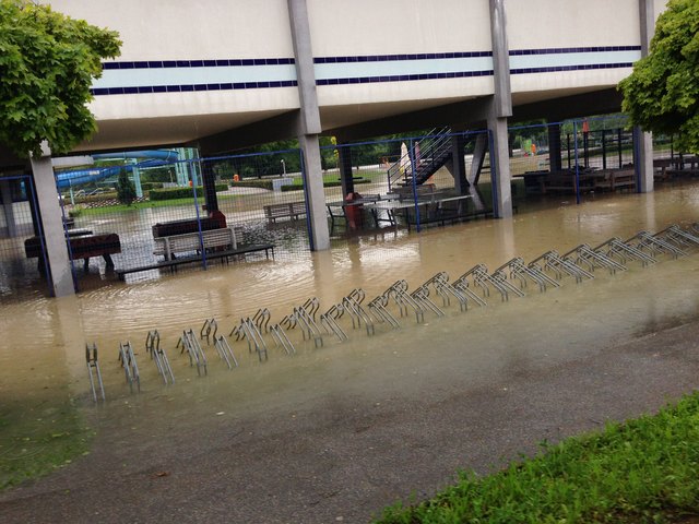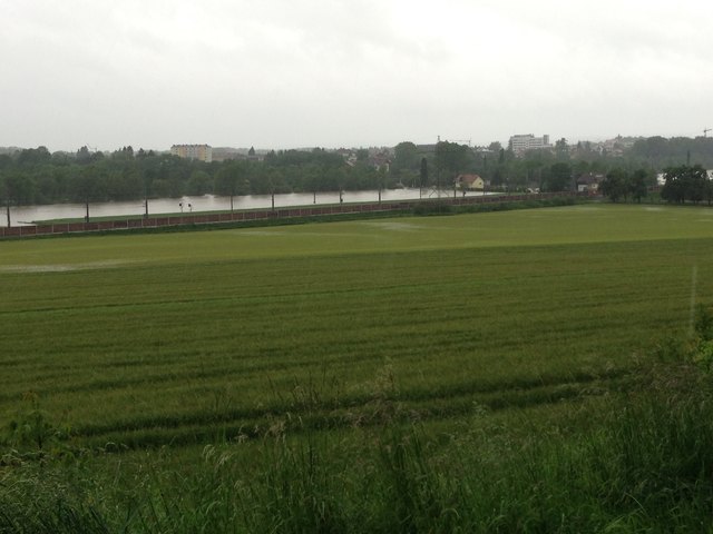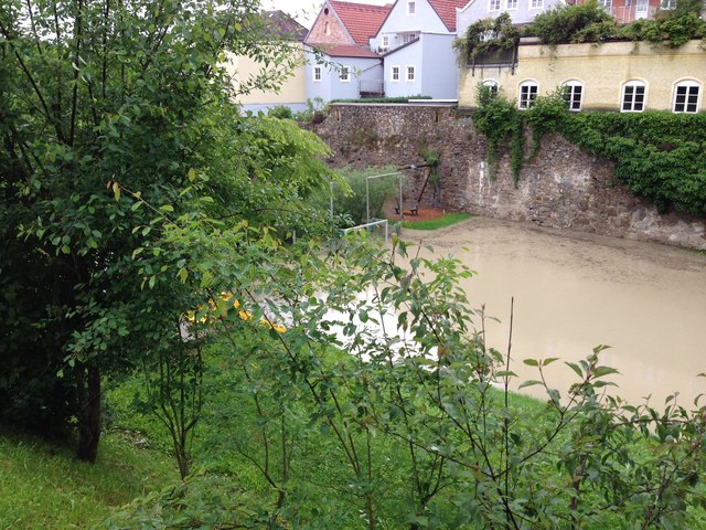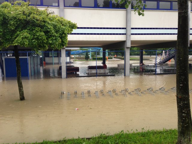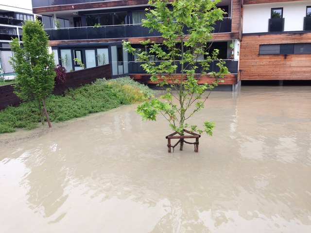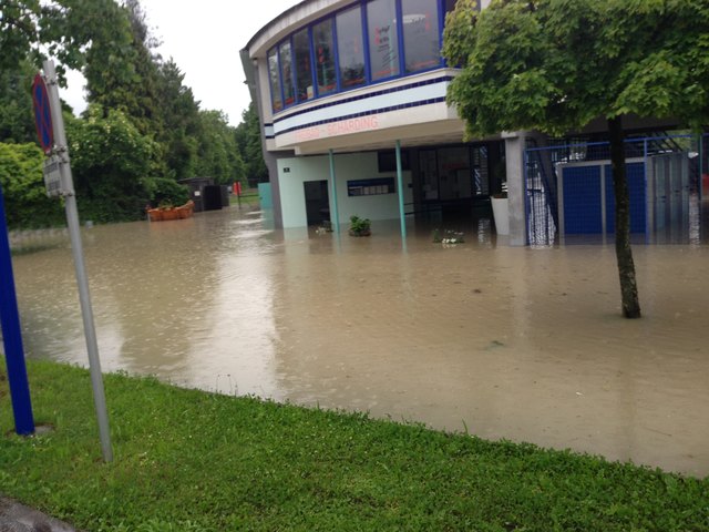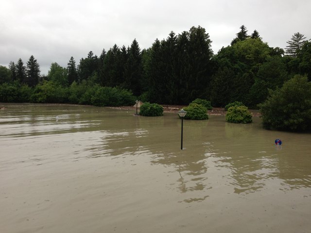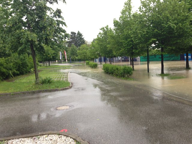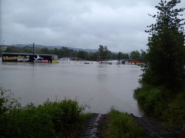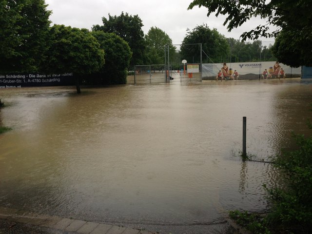 Am SK Sportplatz sieht man am Hauptfeld nicht einmal noch mehr die Tore, ebenso am ATSV Platz. Hier ragt nur mehr das Dach des Clubheims aus dem Wasser.