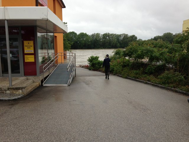 Ersten Prognosen zu Folge soll der Inn in Schärding bis Mitternacht auf 10,40m noch ansteigen. Was das bedeutet kann man sich vorstellen.