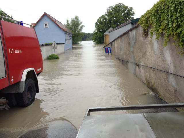 Feuerwehren aus dem ganzen Bezirk und unzählige Freiwillige sind im Einsatz um gegen das Wasser anzukämpfen.