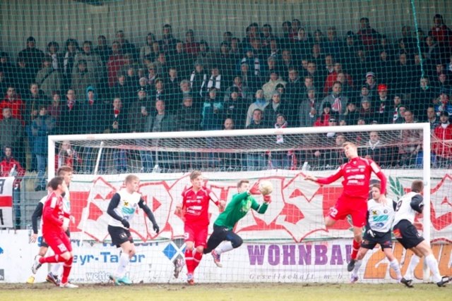 Die gefährlicheren Möglichkeiten hat der SKV, es dauert allerdings bis zur 30. Minute bis den 1000 Fans endlich warm wird. Stadlbauer bringt einen Eckball in den Torraum, Alex Danninger verlängert per Hinterkopf. Der Torhüter der Gäste befördert das Leder selbst zum 1:0 in den Maschen, und macht keine gute Figur dabei.