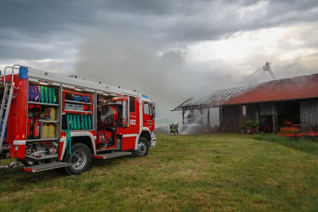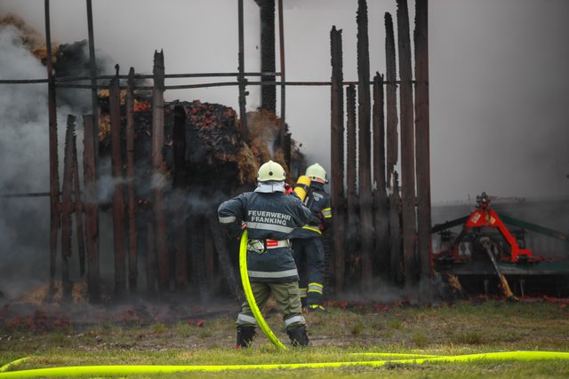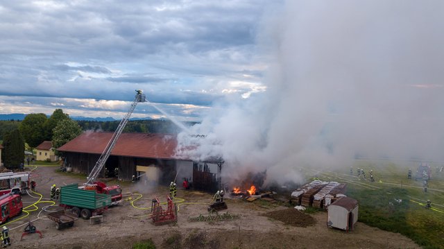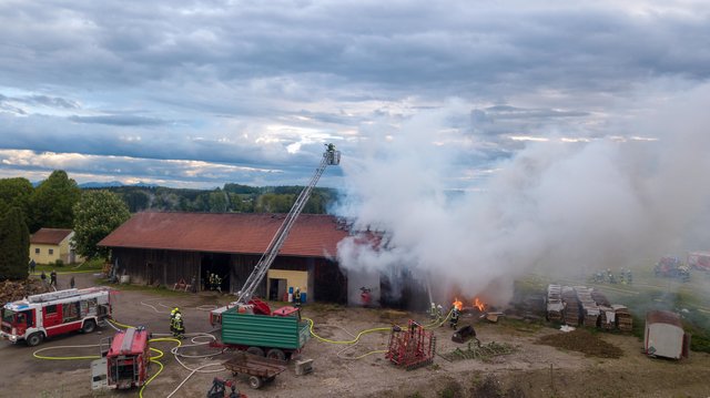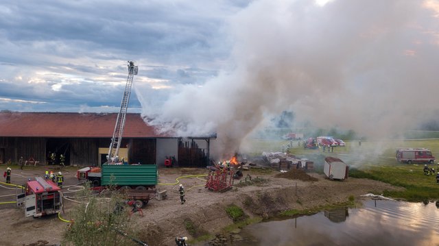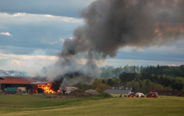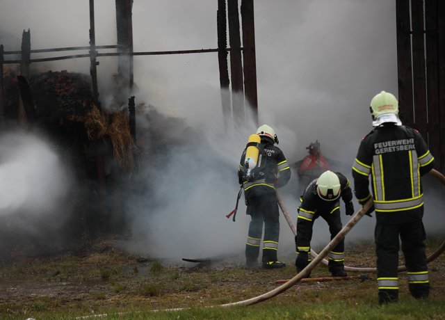 Aus noch unbekannter Ursache brach gestern Abend, am 9. Mai 2019, im Strohballenlager eines landwirtschaftlichen Anwesens in Geretsberg ein Brand aus. Der Landwirt bemerkte beim Zufahren zu seinem Hof im Bereich des Nebengebäudes Brandgeruch. Kurz darauf sah er die im Gebäude gelagerten, brennenden Strohballen und alarmierte die Feuerwehr.