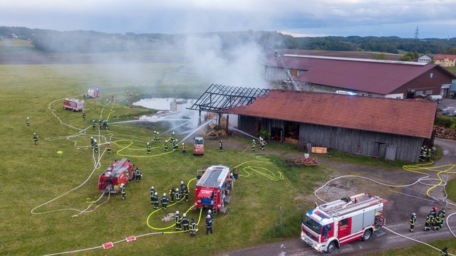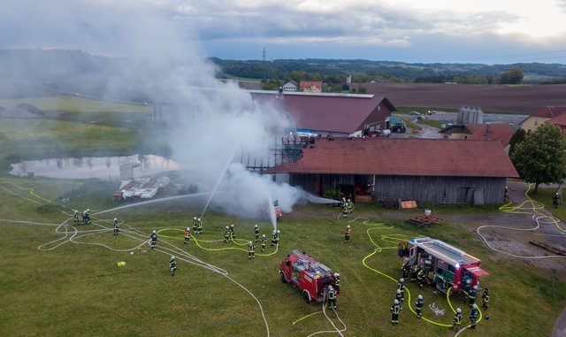 Der Brand konnte durch den Einsatz von neun Feuerwehren mit zirka 120 Mann rasch unter Kontrolle gebracht werden. Der Gebäudeteil inklusive Dachstuhl wurde schwer beschädigt. Laut Meldung der Polizei bestand zu keiner Zeit eine Gefährdung für Menschen und Tiere.