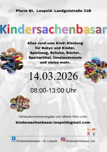 Beim großen Kindersachenbasar werden gut erhaltene Baby- und Kinderkleidung, Spielsachen, Bücher, Schuhe, Sportgeräte, Umstandsmode und viele weitere praktische Artikel angeboten.