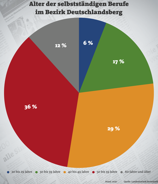 Wo sind die meisten Jungen zu finden? Unter 29-Jährige finden sich fast nur im Gewerbe und der Landwirtschaft (hier gibt es einen Landwirt unter 19 Jahren). Bei den Wirtschaftstreuhändern gibt es einen Selbstständigen zwischen 20 und 29 Jahren – der einzige in der ganzen Steiermark. Apropos Wirtschaftstreuhänder: Die Steuerberater und Wirtschaftsprüfer "boomen" in Deutschlandsberg. 27 findet man bei uns, mehr gibt es nur in den großen Bezirken Graz, Graz-Umgebung und Liezen.
