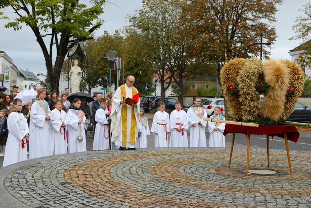 Auch in diesem Jahr fand, wie bereits traditionell, am ersten Oktobersonntag das Erntedankfest der Pfarre St. Valentin statt. Zahlreiche Gläubige sowie die Stadtkapelle St. Valentin, Mitglieder der Feuerwehr Endholz, die Goldhaubenfrauen St. Valentin und Vertreter des Pfarrgemeinde- und Kirchenrats versammelten sich um 9 Uhr am Hauptplatz von St. Valentin.