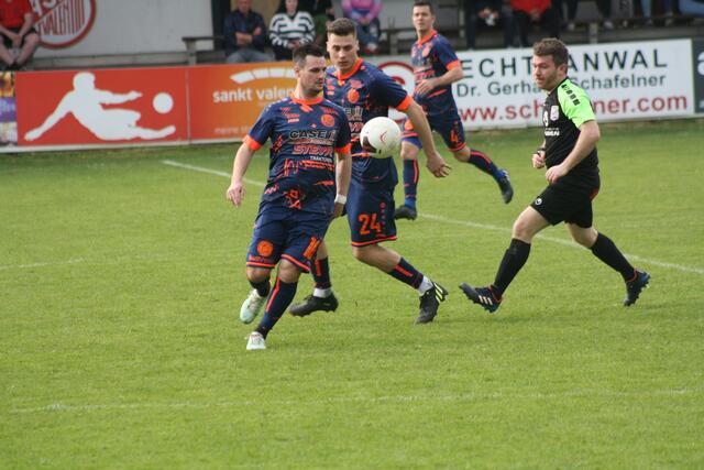 Zunächst lief für den Favoriten aber noch alles nach plan. Bereits in Minute sechs kam Martin Winklehner zur ersten Möglichkeit, bewies jedoch, dass der Mittelfeldmotor nicht unbedingt zu den kopfballstärksten Akteuren der Liga zählt. Spielerisch taten sich die Gastgeber gegen gutstehende Langensteiner jedoch schwer Lösungen zu finden. Ein Abwehrbock der Gäste nach 35 Minuten ermöglichte St. Valentins Niklas Gruber die große Chance zur Führung. Da dieser Schuss drüber ging und sein zweiter Versuch in der 42. Minute an die Stange klatschte, blieb es beim torlosen Remis zur Halbzeit.