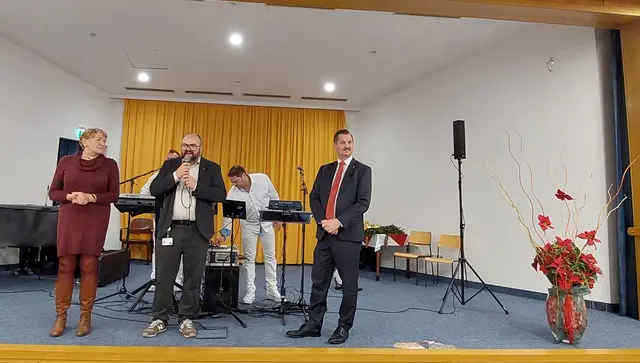Die weitere Begrüßung auf der Bühne im Saal wurde mit Peter Trenkler eröffnet,Er erklärte vieles über die Aktivitäten in den Pensionistenklubs. Dazu kam auch unser Bezirkschef Marcus Franz der uns das Publikum herzlich begrüßte und verschiedenes über die persönliche Weihnachtszeit ans Herz legte.