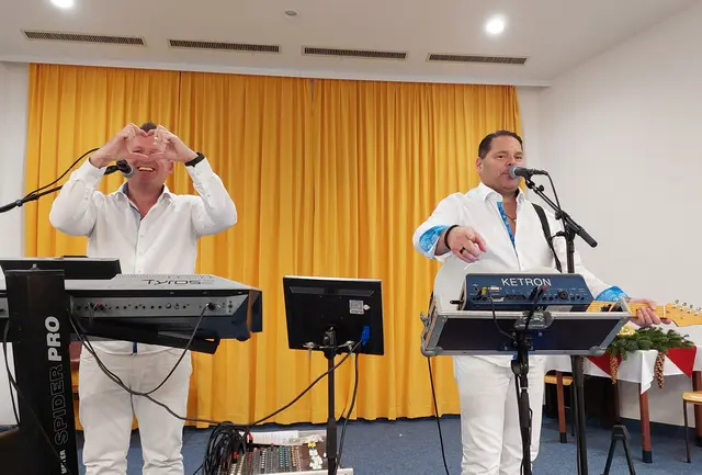 Musikalischen Klänge von Mani und Rudi Partymix Powerband begleiteten uns zu natürlich auch zu unseren Platz. Wir wurden musikalisch mit schönen Weihnachtsmelodien begrüßt, sowohl als auch in späteren Folge mit Melodien und Oldies mit Gesang verwöhnt.