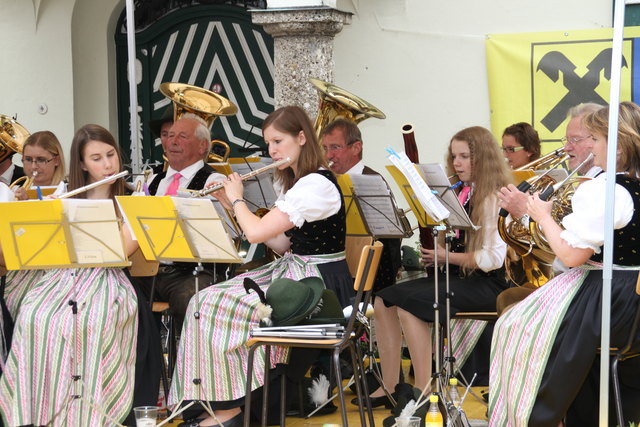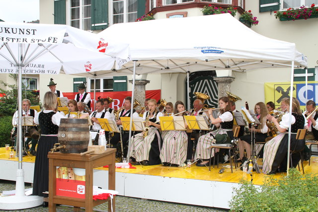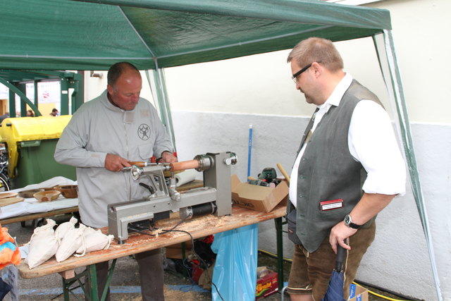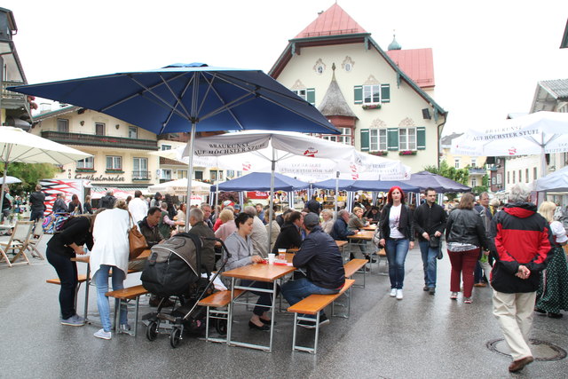 ST. GILGEN (schw). Recht zünftig ging es beim Dorffest in St. Gilgen her, das von Bürgermeister Otto Kloiber mit einem Bieranstich eröffnet wurde. "Heuer können unsere Besucher wieder den Handwerkern über die Schulter blicken", erklärte Organisator Alfred Feitzinger, der auf dem Mozartplatz rund um das Rathaus unter anderem mit einem Schmied, einem Tischler und einem Drechsler traditionelles Handwerk präsentierte. Musikalisch umrahmt wurde das Fest von der Tanz- und Show-Band Salzkammergut Express und von der Bürgermusik unter der Leitung von Kapellmeister-Stellvertreterin Burgi Laimer. Ergänzt wurde das Programm mit Salutschüssen der Schafbergschützen und Auftritten des Trachtenvereins "D`Stoaklüftla" unter Obmann Georg Laimer. Partystimmung kam abends am Pichlerplatz auf.