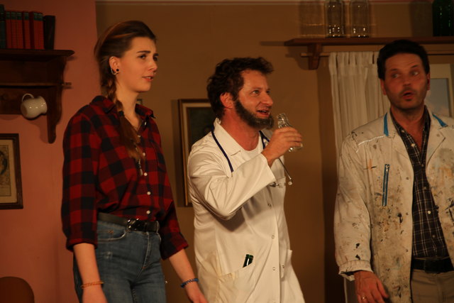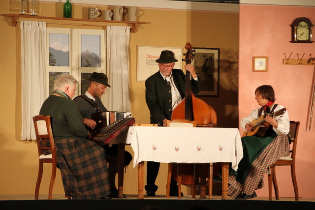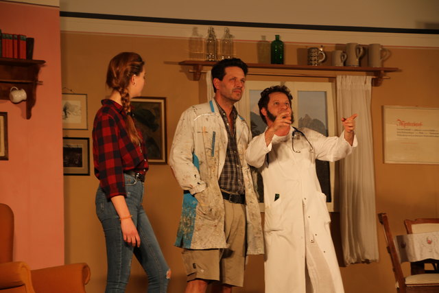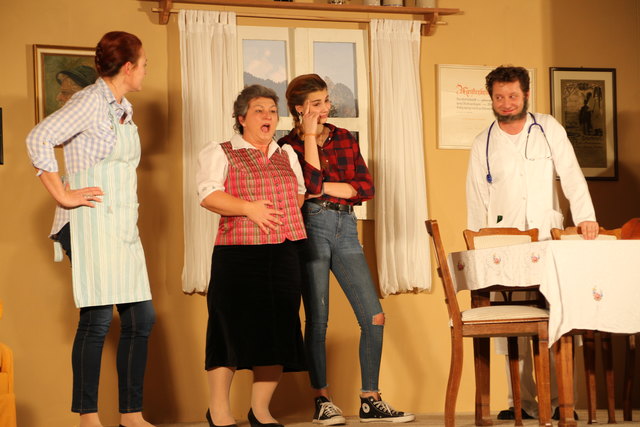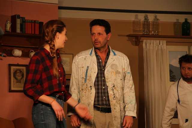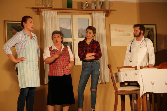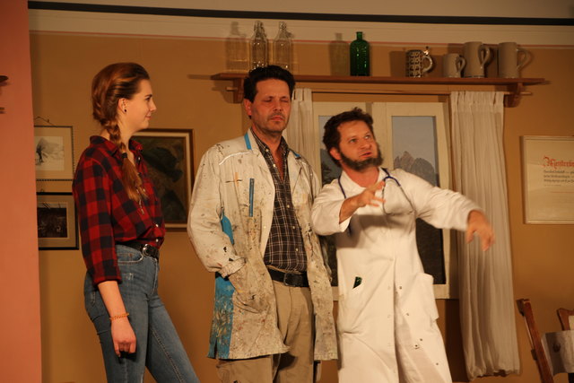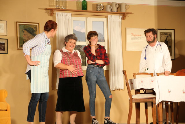GROSSGMAIN (schw). Herzhaft lachen konnten die Besucher bei der volkstümlichen Komödie "Wo gehobelt wird, da fallen Späne" von Schriftsteller und Kabarettist Toni Lauerer. Tischlermeister Ludwig Schreiner (Peter Kaufmann) ist stolz auf seine hübsche und gescheite Tochter Eva (Josefine Walther), die Studentin ist. Nach den Vostellungen ihres Vaters soll deshalb der zukünftige Schwiegersohn ein Arzt, Jurist oder Unternehmer sein und Sohn Andy (Alexander Seitz) den väterlichen Tischlereibetrieb übernehmen. Doch es kommt anders als er denkt. Der Sohn will maturieren und dann studieren und die Tochter verliebt sich in einen Tischler. Um den Vater umzustimmen, hat Eva eine geniale Idee. Sie lässt ihren Freund Franz (Markus Fallenegger) vor ihrem Vater als besoffenen Arzt, seltsamen Juristen und Unternehmer auftreten. Der Vater ist dem Wahnsinn nahe angesichts der Gestalten. Ob der Plan von Eva gelingt, bleibt bis zum Schluss spannend. In den weiteren Rollen wirkten als sogenannte "Mithobler" Bärbel Walther (Mutter), Sabine Aigner, Sabine Schmidhammer, Susanne Dallinger, Claudia Hölzl und Juan Dominique Contreras mit. Musikalisch umrahmt wurde das Theaterstück von der Prandtner Hausmusik Für die heitere Inszenierung sorgte Matthias Schwab, die Gesamtleitung hatte Norbert Wurster inne.