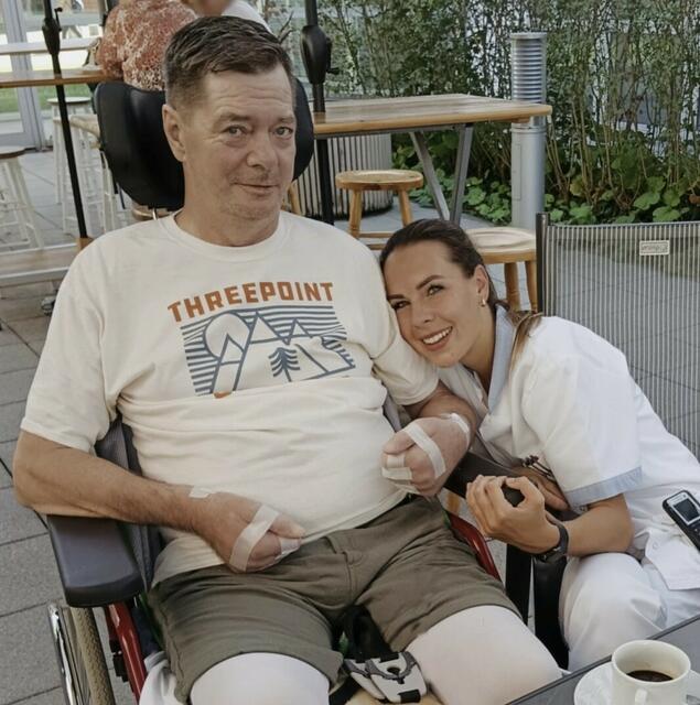 Alois Rockenschaub, von Beruf Maschinist, wollte sich am 19. Juni 2023 nach Feierabend noch einmal schnell abkühlen und in den Pool gehen. Der damals 57-Jährige rutschte auf der Leiter aus und zog sich bei dem verhängnisvollen Sturz eine Querschnittlähmung am dritten und vierten Halswirbel zu. "Er ist ab den Schultern abwärts seither großteils ohne motorische Funktion", sagt Tochter Carmen. "Seit Dezember ist Papa im Rehabilitationszentrum Bad Häring in Tirol. Er wird dort bestens versorgt und unterstützt."