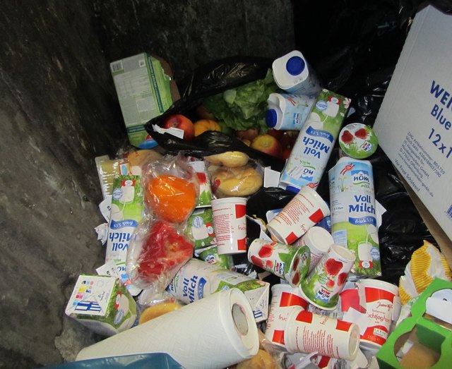 Nicht immer haben wir so viel Glück wie diesen Abend. Manchmal gibt es Tage, an denen wir nichts im Müll finden. Entweder weil andere schneller waren als wir oder weil an diesem Tag nichts weggeworfen wurde. Ärgern müssen wir uns darüber nicht, denn am nächsten Tag, so können wir annehmen, wird die Tonne umso voller sein. Wenn das nicht der Fall ist, fahren wir einfach zum nächsten Supermarkt und suchen den dortigen Müllraum oder Innenhof. Supermärkte gibt’s ja genug….