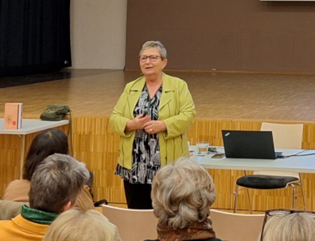 Hildegard Nachum, Politik- und Kommunikationswissenschaftlerin, ist eine von 17 Validation Masterinnen weltweit, zertifizierte Validationslehrerin und seit vielen Jahren gefragte Referentin in der Ausbildung von Pflegekräften. Sie hat dem Publikum des Angehörigenabends einen Einblick „in die Welt von Menschen mit Demenz“ gegeben und erklärte auf sehr beeindruckende Weise, wie wir diese bestmöglich begleiten und unterstützen können, so die Heimleiterin Magdalena Humer.