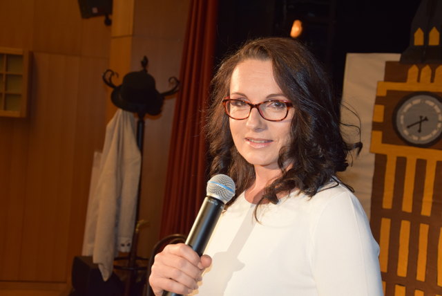 Direktorin Sabine Nöhrer freute sich, die vielen Gäste, unter anderen Bürgermeister Marcus Martschitsch und Vizebgm Herwig Matejka, in der ausverkauften Hartberghalle begrüßen zu dürfen.