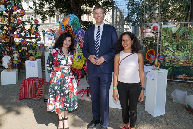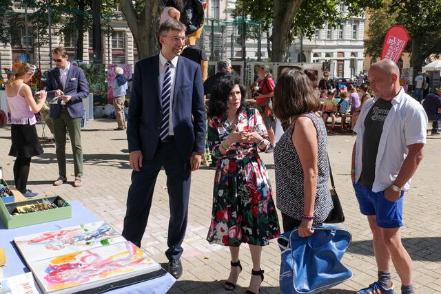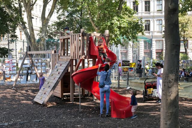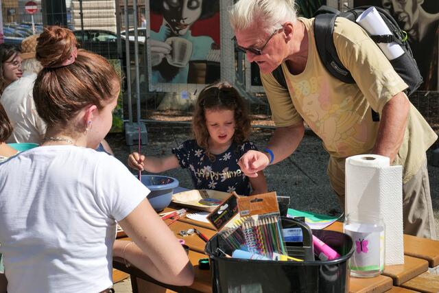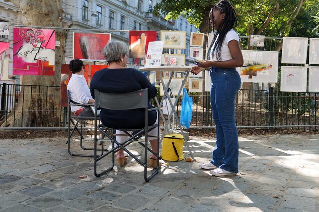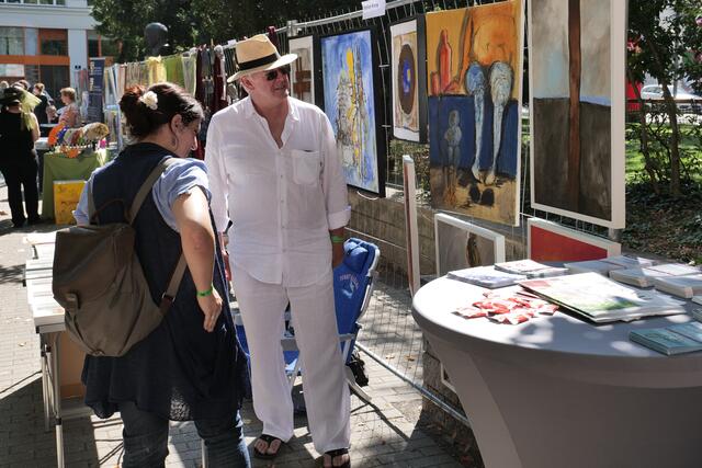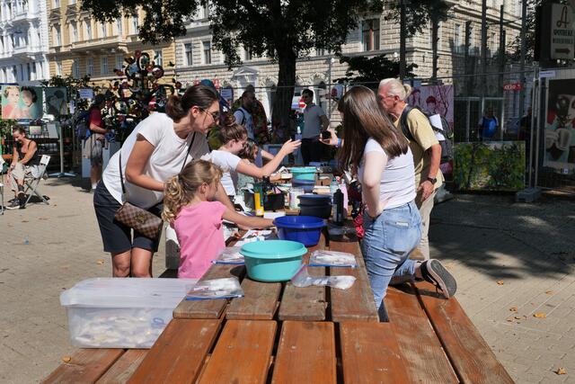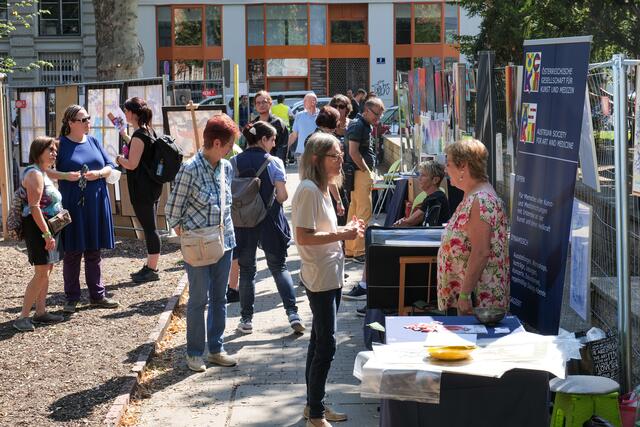 Begeistert von dem Freiluft-Event zeigten sich nicht nur die vielen Besucher, sondern ebenso Bezirksvorsteher Markus Figl (ÖVP). Auch die kleinen Gäste kamen bei "Kunst am Zaun" auf ihre Kosten und konnten am Kindertisch selbst künstlerisch aktiv werden.