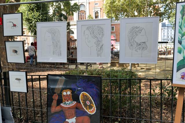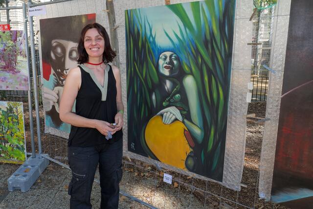 Am Samstag stellten 75 Künstlerinnen und Künstler ihre Werke beim Freiluft-Event "Kunst am Zaun" wieder im Börsepark zur Schau.