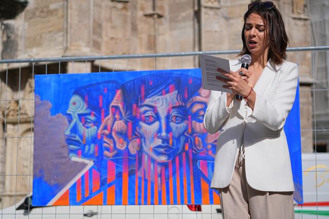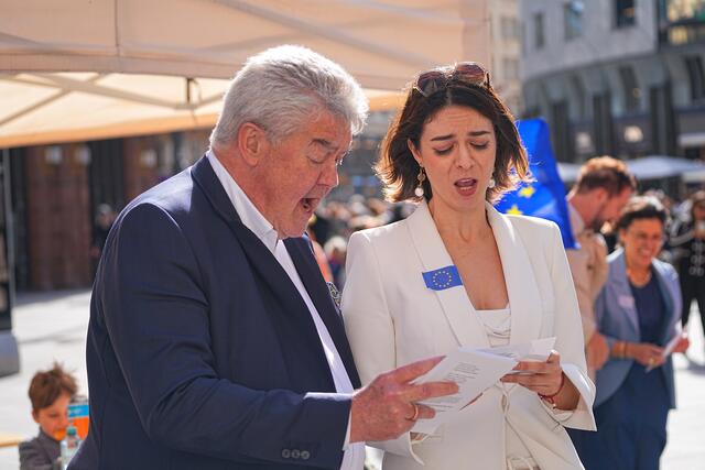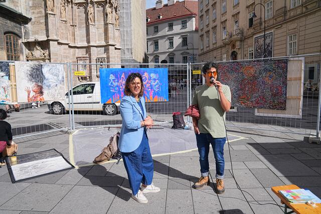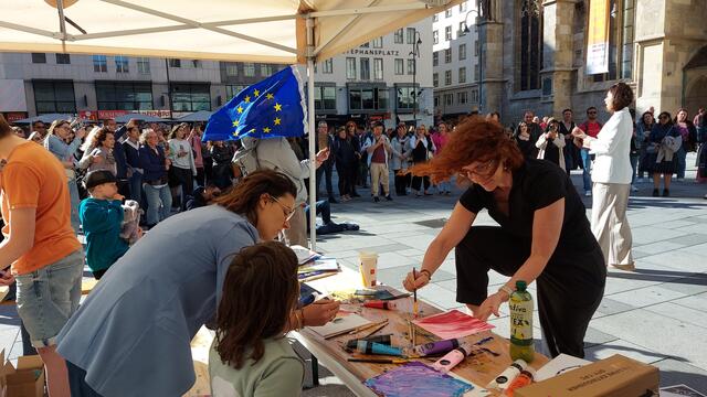Am 01.06.2024 fand am Stephansplatz Wien die Aktion “Europa Wähl!” statt - eine überparteiliche Initiative, initiiert von der EU - Bezirksrätin Valeria Folgar-Deinhardstein, mit dem Ziel, mithilfe direkter Bürgerbeteiligung durch interaktive künstlerische Gestaltung im Rahmen einer Kunstausstellung von José Augusto Ramirez alias Chespi, Francisco Rubiel Osorio Faber und Katerina Teresidi, sowie Gesang der Europahymne auf Latein, welche von Dr.Roland - dem Gründer der berühmten Maturaschule in Zusammenarbeit mit Dr.Diem konzipiert und durch die Opernsängerin Luxana Lozano öffentlich vorgetragen wurde. Es gab die Möglichkeit direkter Informationsvermittlung und Fragestellung vor Ort um sich über die Wichtigkeit der Europäischen Wahl zu informieren. Organisiert wurde die Aktion von den Vereinen MIR - Medias In Res von Katerina Teresidi, LichTraum von Sonia Siblik, sowie dem Verein zur Förderung des Ansehens der Demokratie von Feysulah Milenkovic. Als Unterstützer traten European Union of Women Austria (EUWA), der Stephansdom, sowie die Barbaro Group auf.