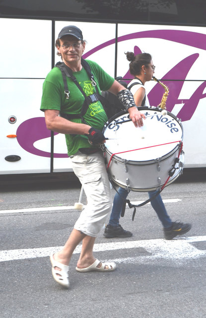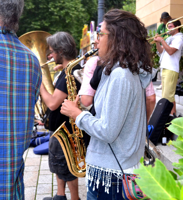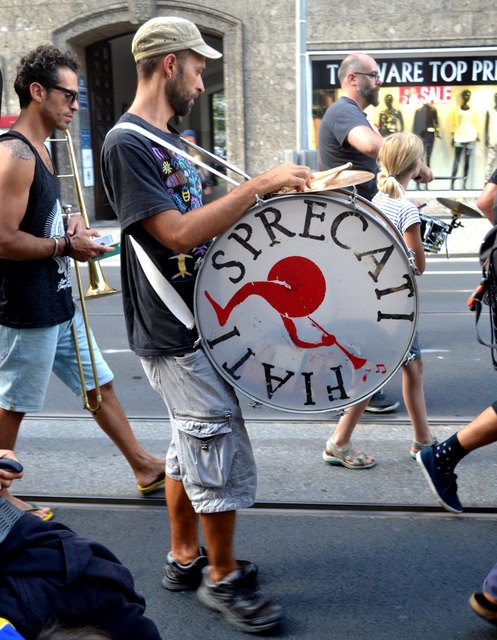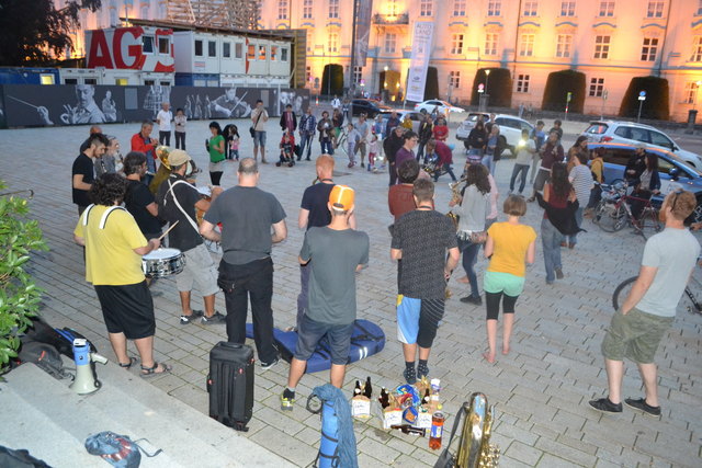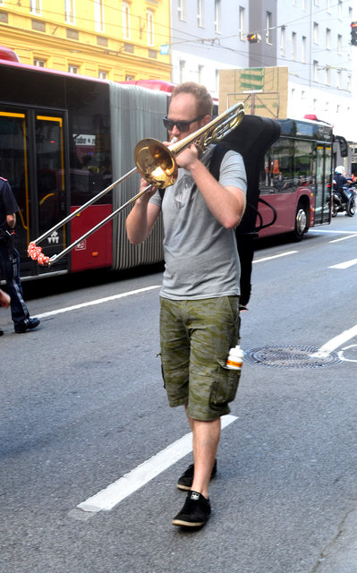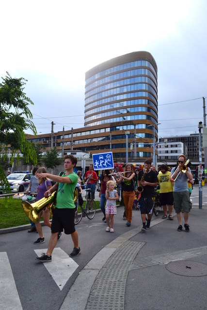 Aber weil eine größere Musikgruppe ja leider nicht so einfach draußen spielen darf, auf der Straße, am Gehsteig, im Park, auf der Brücke, unter der Brücke, neben der Spur & vor allem dort, wo man sie nicht erwartet, griffen sie am Donnerstag, dem 18. August zu einem ungewöhnlichen musikalischen Mittel. Um sich "den öffentlichen Raum wieder zurück zu holen" unternahmen sie einfach eine Musik-Demonstration.