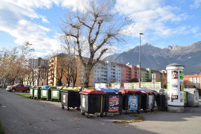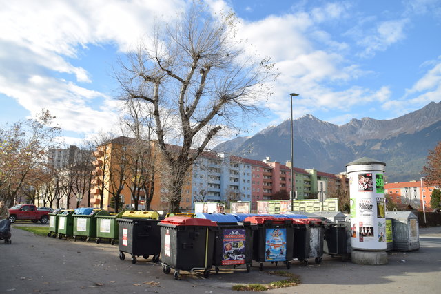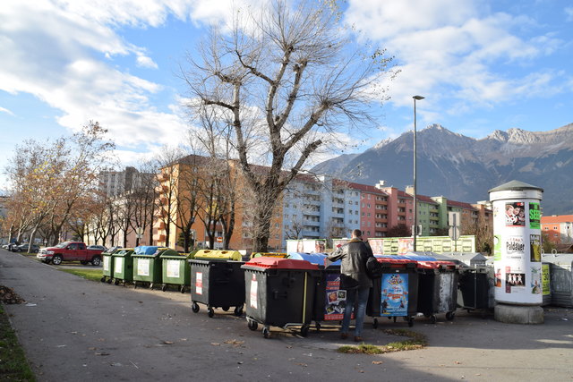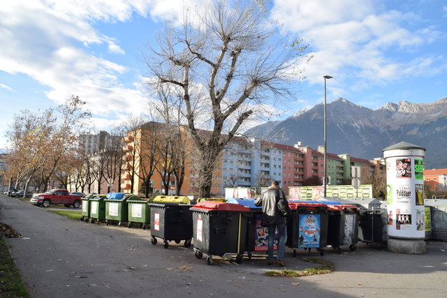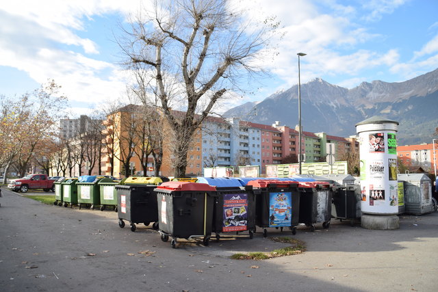 In Innsbruck gibt es mehrere "Hotspots", Recycyling-Müllinseln, an welchen sich am Wochenende chaotische Zustände wiederspiegeln.