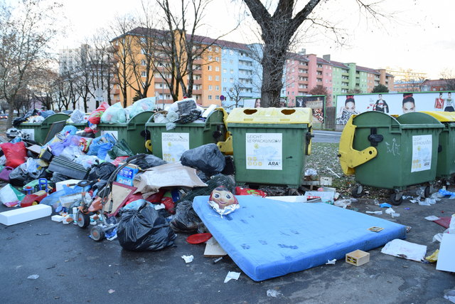 Auch an diesem Montagmorgen ist die Recyclinginsel in der Anzengruberstraße in einem chaotischen Zustand. Matratzen, Dreiräder, Schuhe, aber auch ein ganzes Fenster wurden an diesem Wochenende an der Ecke zur Anton-Eder-Straße abgestellt. Innsbruck steckt zwar schon mitten in der Umstellung des Müllsystems – Papier und Leichtverpackungen sollen künftig abgeholt werden – trotzdem entschärft sich die Situation bei den Recyclinginseln nicht. Die Probleme bleiben die alten: Mülltourismus an den Hotspots, Chaos, Dreck, Ekel am Wochenende. Vor allem an Stellen, die in der Nähe zu verkehrsreichen Straßen oder der Autobahn liegen, kommt es gehäuft zu einer derart extremen Verschmutzung. Die AnrainerInnen rund um das Tivoli sind aufgebracht, vor allem die Wochenenden machen ihnen zu schaffen, denn da liegt der Müll bei den Containern und auf der Straße gehäuft herum. Wenn es windig ist, dann werden die Plastiktüten und Leichtverpackungen in der ganzen Gegend verteilt. Eine wütende Anrainerin erzählte dem STADTBLATT gegenüber, dass sie sich schon davor graust, den Müll zur Recyclinginsel zu bringen. Andere schreiben auf der Webseite "provinnsbruck.at", "wenn’s der Stadt wurscht ist, türmt sich der Müll eben an den Müllinseln".