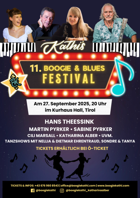 Am Freitag, den 27. September 2025, steht das Kurhaus Hall in Tirol ganz im Zeichen von Boogie-Woogie und Blues. Das 11. Boogie & Blues Festival bringt nationale und internationale Spitzenkünstler auf eine Bühne und verspricht einen Abend, der Musikliebhaber begeistert und zum Mitgrooven einlädt.