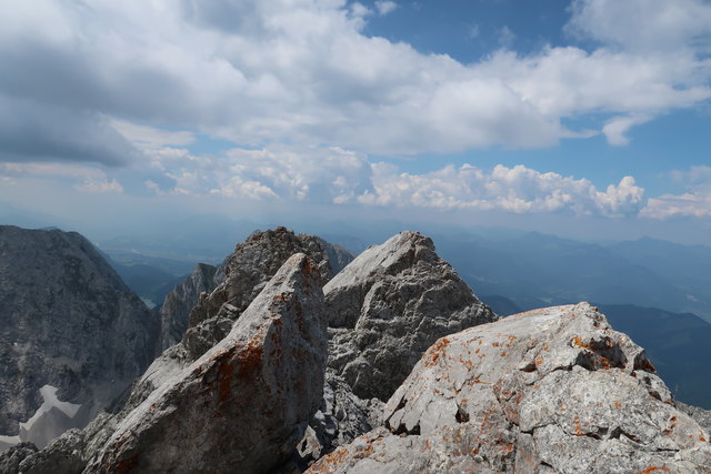 Am Gipfel wird man mit unendlichen Fernblicken und schwindelerregenden Nah- und Tiefblicken auf die umliegende Kaiserwelt belohnt.