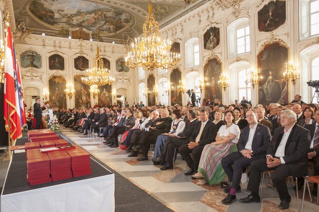 „Ob in Kultur- und Sportvereinen, im Gesundheitswesen oder im Sozialbereich – in nahezu allen Lebensbereichen treffen wir tagtäglich auf Menschen, die ihre Zeit mit ihren Mitmenschen teilen, helfen, unterstützen, anpacken. Dieser Einsatz ist unbezahlbar und soll entsprechend gewürdigt werden. Ohne Menschen wie sie wäre unser Land um vieles ärmer“, betonte LH Platter in seiner Festansprache. Der Landeshauptmann dankte auch den Partnern, Kindern und Freunden, denn „ohne ihr Verständnis, ihre Unterstützung und auch ihre Bereitschaft zum Verzicht wären die heute zu Ehrenden oft nicht in der Lage gewesen, das zu leisten, wofür sie heute ausgezeichnet werden.“