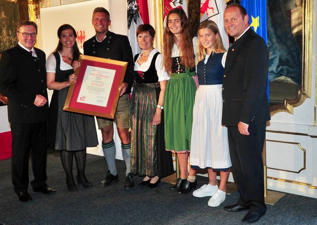 TIROL/BEZIRK KITZBÜHEL (niko). Sich für das Gemeinwohl einsetzen, das Wir vor das Ich stellen, füreinander da sein – das ist eine Lebenseinstellung, die unzählige Menschen in Tirol und Südtirol auszeichnet. Am Hohen Frauentag wurden Personen für ihr Engagement zum Wohle der Allgemeinheit von den Landeshauptleuten Günther Platter und Arno Kompatscher in Innsbruck mit Verdienstkreuzen, Verdienstmedaillen und Lebensrettungsmedaillen geehrt. Weiters wurde 13 HofbesitzerInnen das Recht verliehen, den Titel „Erbhof“ zu führen.
