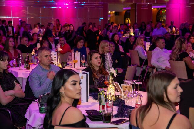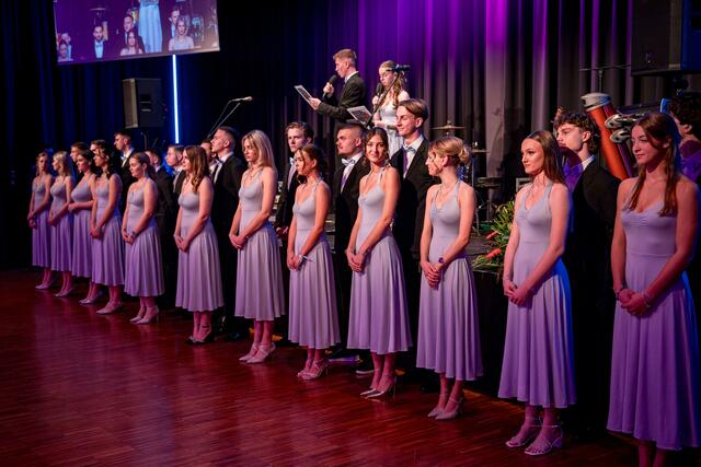 VELDEN. Zum diesjährigen Maturaball luden der Direktor der HAK-TAK Klagenfurt, Hans Pogelschek, der Elterbverein mit Obmann Gašpar Ogris-Martič, das sechsköpfige Ballkomitee und natürlich die 39 Maturantinnen und Maturanten in das Casineum nach Velden. Eröffnet wurde der bestens besuchte Ball mit einer klassischen Polonaise der Tanzschule Kunauer, welche auch für die Mitternachtseinlage verantwortlich zeichnete. Die vielen Besucherinnen und Besucher erwartete ein buntes und vielfältiges Programm. Neben einer Tombola, einer Fotobox, einem reichhaltigen Kuchenbuffets und einem Schätzspiel konnte auch noch ein Bild der bekannten Bleiburger Künstlerin Christine Meklin ersteigert werden. Für die perfekte Tanz- und Unterhaltungsmusik sorgte im Ballsaal Mambo Kings. Die Disco zum Beben brachte DJ Ambro.