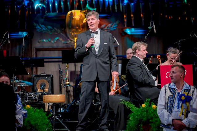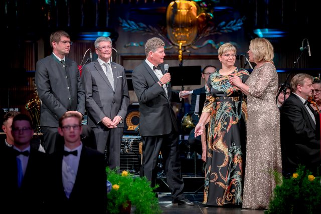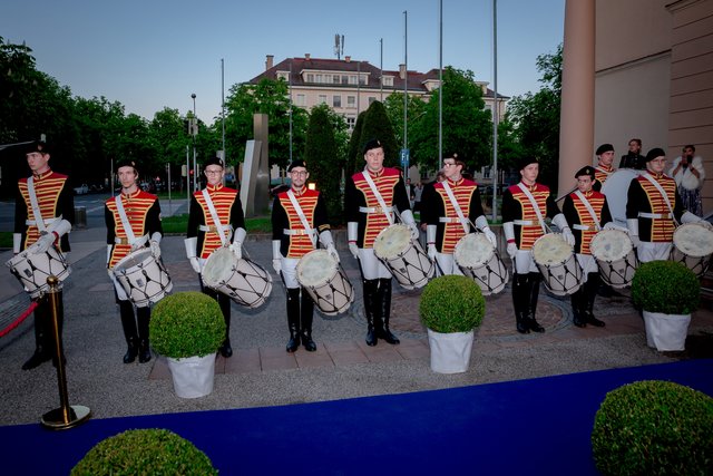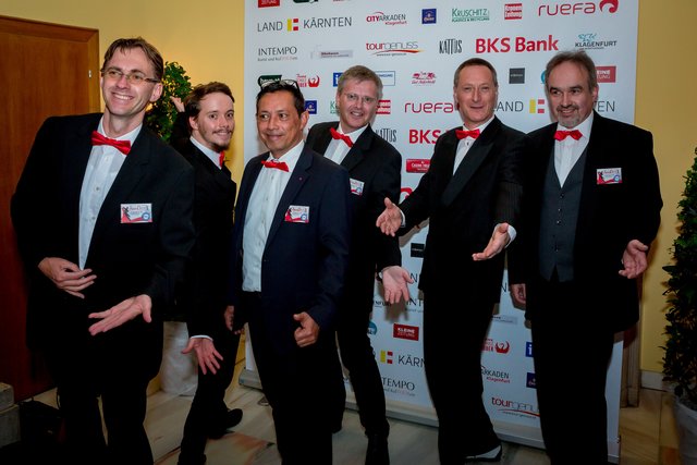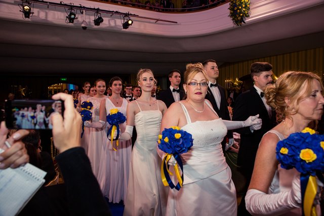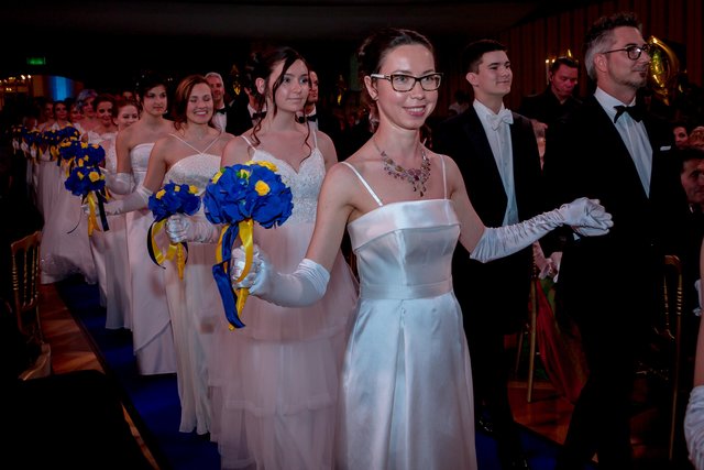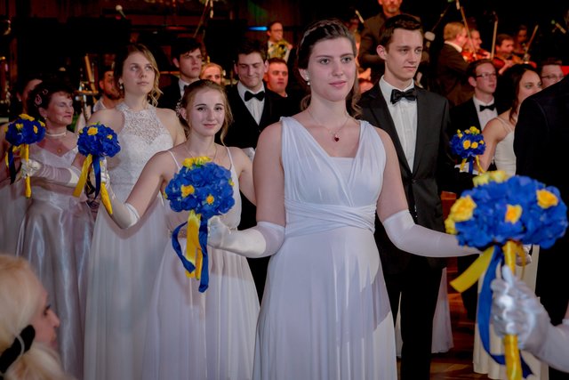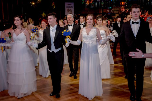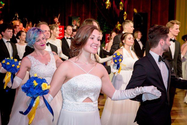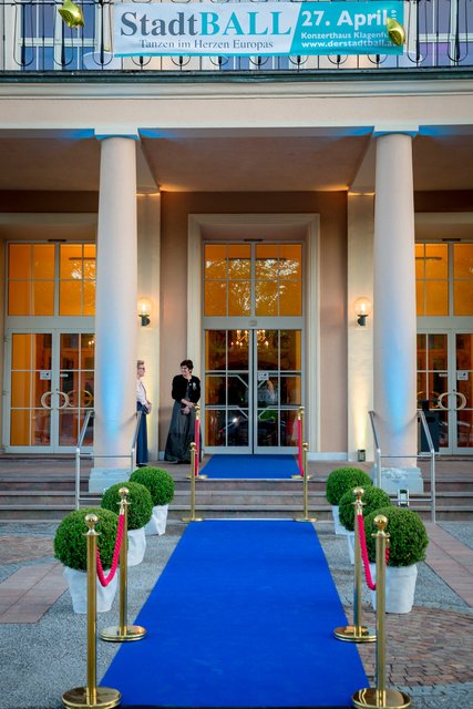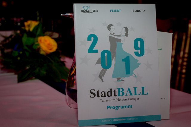 „Mr. Stadtball“ Ernst Bauer hatte alle Hände voll zu tun und es hatte den Anschein, dass er tatsächlich jeden Gast, der über den blauen Teppich marschierte, persönlich begrüßte. Was aber bei rund 900 Ballbesuchern natürlich kein leichtes Vorhaben war. Unterstützt wurde er von dem Kärntner Trommlerkorps aus St. Veit, der die Besucher bereits vor dem Konzerthaus in Empfang nahm. Nach dem Einzug des Korps fand die feierliche Eröffnung mit dem Eröffnungskomitee – rund 70 Tänzerinnen und Tänzer zeigten eine perfekte Choreographie von Tanzexpertin Iris Huber – statt und eine rumänische Tanzgruppe brachte die Gäste mit der Aufführung eines rumänischen Volkstanzes zum Staunen. Durch den Abend führte der Conférencier Karl von Hohenlohe. Tanzmusik gab es vom Franz Lehar Orchester und dem Salon Orchester Imperial. Für weiteren musikalischen Hochgenuss sorgten die tasmanische Sopranistin Bryony Dwyer und der Pianist Davorin Mori.