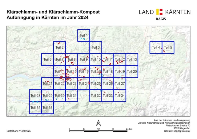 - Landwirtschaftliche Grundstücke 2022 bis 2024 in Klagenfurt/Waidmannsdorf aus dem Klärschlamm-Register des Landes Kärnten
