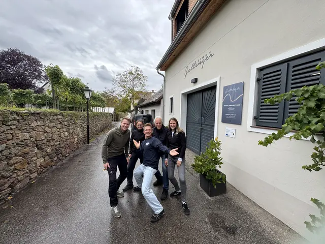 - Familie Gattinger und Andi Knoll vor dem Weingut