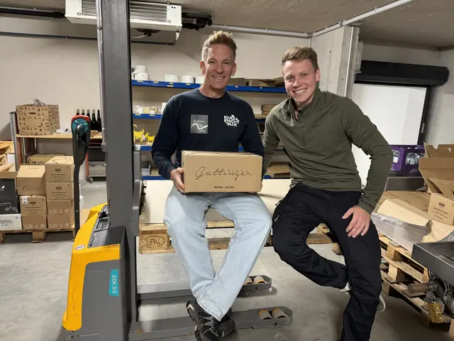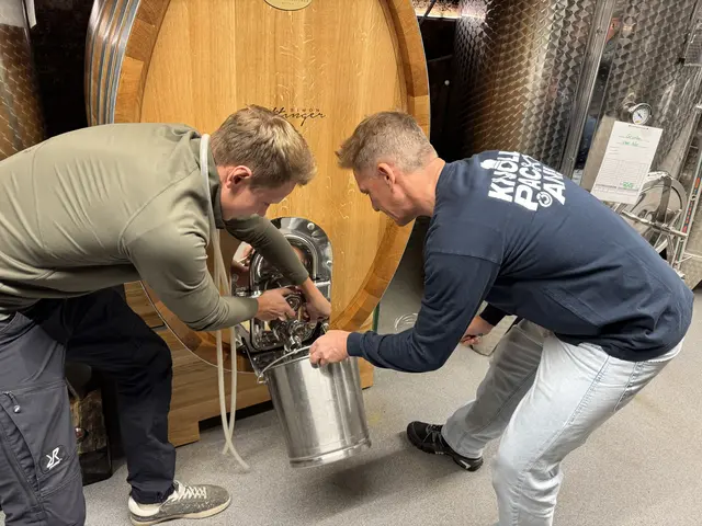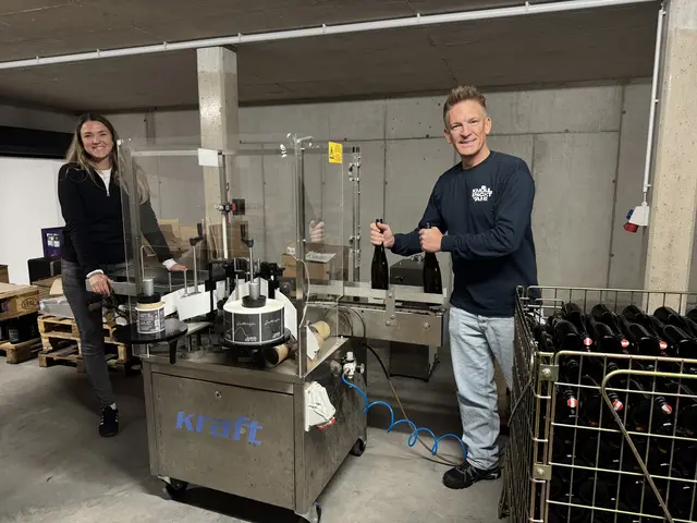 - Simon Gattinger und Andi Knoll im Raum, in welchem der Wein verpackt wird.