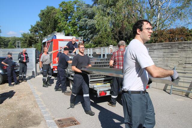 ZÖBING - Während in den Weingärten von Langenlois versucht wird, die Auswirkungen einer Form der Klimakatastrophe zu bewältigen (Hagel und Starkregen am 13. September 2023), trainierte die Freiwillige Feuerwehr Zöbing am 16. September 2023 den Schutz vor einer anderen Form und überprüfte den Hochwasserschutz am Kamp.