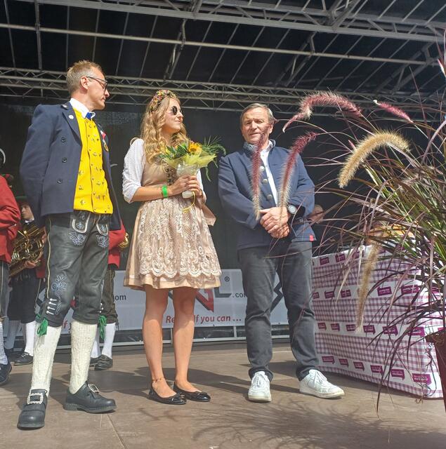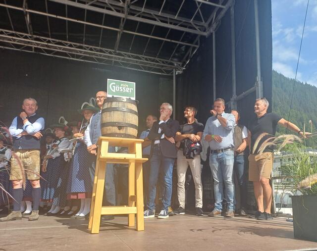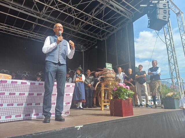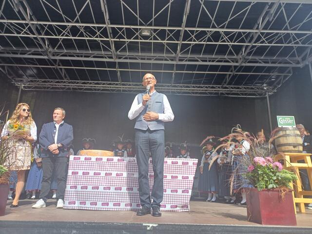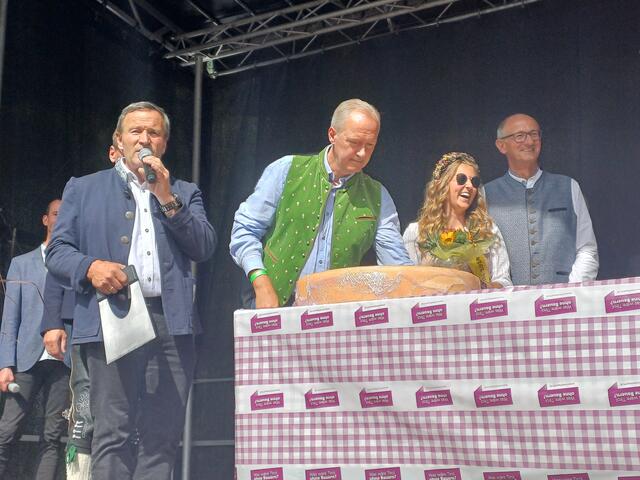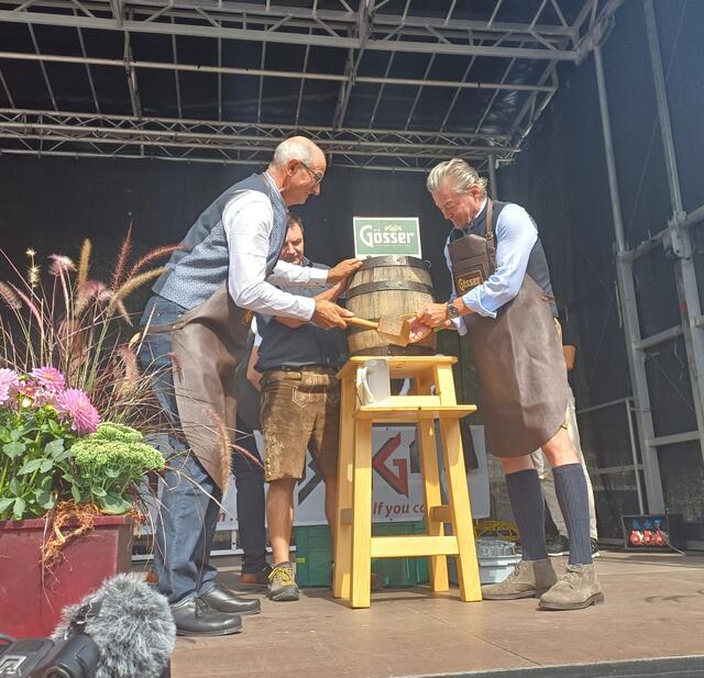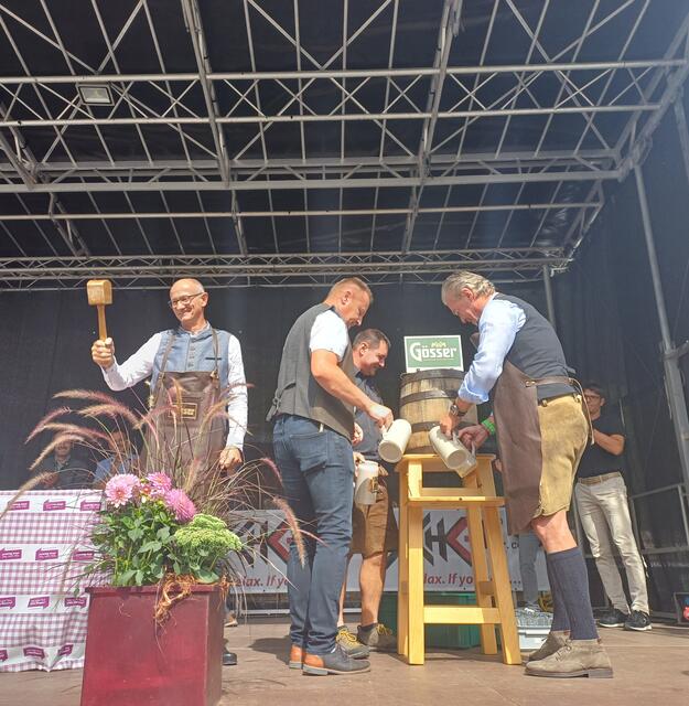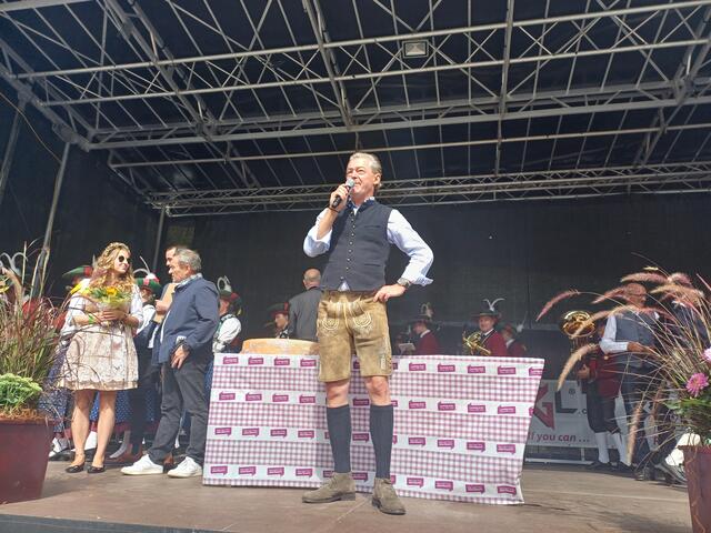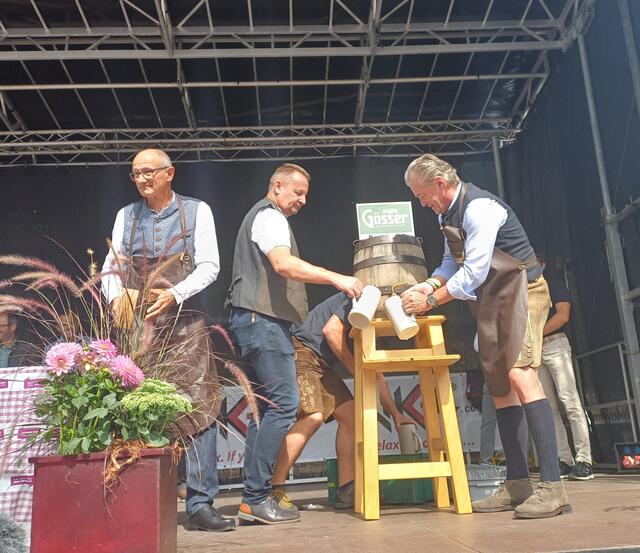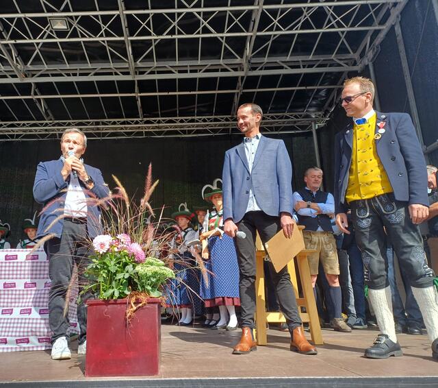 Ein besonderes Highlight war der Besuch von Landeshauptmann Anton Mattle, der trotz seines engen Terminplans zum Festplatz gekommen war. In seinen Grußworten lobte er die Organisation und die Bedeutung des Markttages für die regionale Gemeinschaft. Gemeinsam übernahmen Alexander von der Thannen und Landeshauptmann Toni Mattle den Bieranstich, der auf Anhieb gelang und den Mattle mit „Onzapft ischt“ kommentierte! Begeistert Wirtschaftskammerobmann Michael Gitterle.