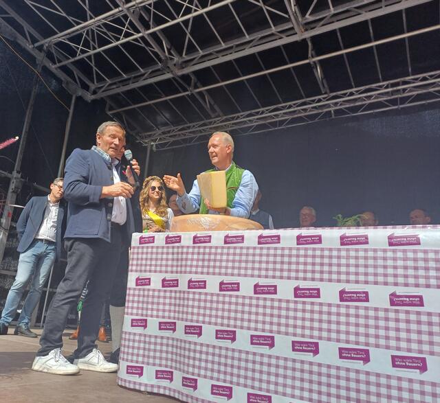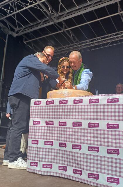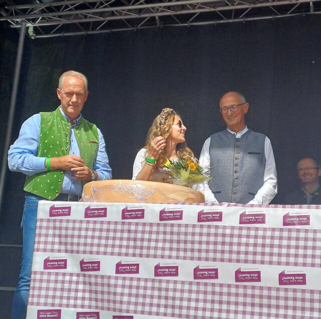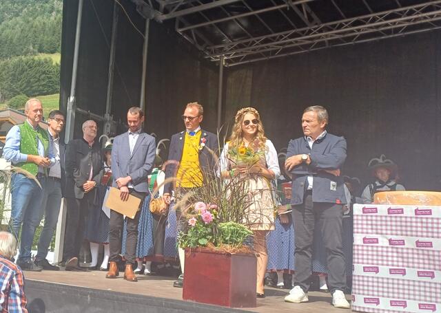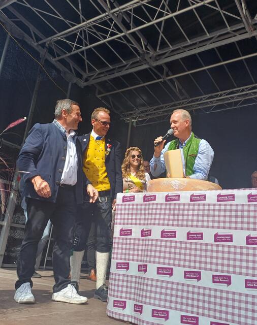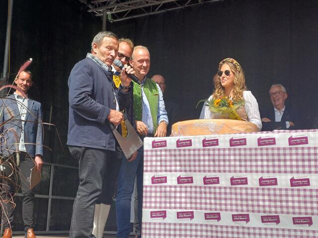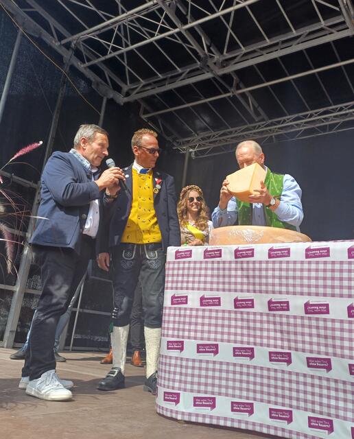 Ein weiterer Höhepunkt des Tages war die Wahl der neuen Käsekönigin. Bürgermeister Werner Kurz führte die Zeremonie durch, bei der die Käsekönigin 2023, Michelle Maurer, von Hannah Zangerle abgelöst wurde. Sie übernahm gemeinsam mit Dietmar Walser, Hermann Huber und dem Käse-Affineur 2000, Haubenkoch Martin Sieberer, den Käseanstich. Sieberer verteilte den Paznauner Almkäse und lobte dessen Qualität.