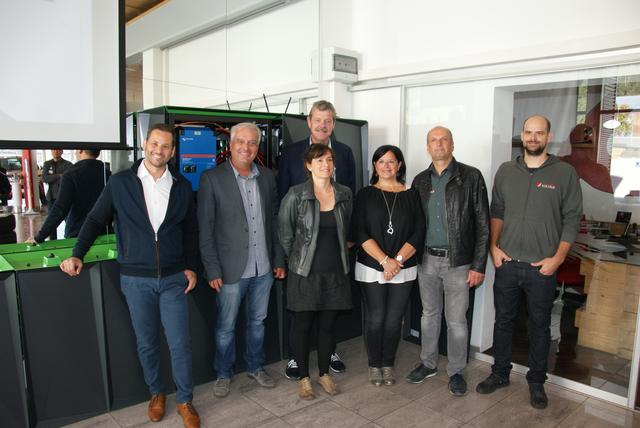 - Innovative Anlage: Stefan Heiß, Ingo Wucherer, Bgm. Heinz Kofler, Elisabeth Steinlechner, BH Markus Maaß sowie Maria und Toni Heiß (v.l.).