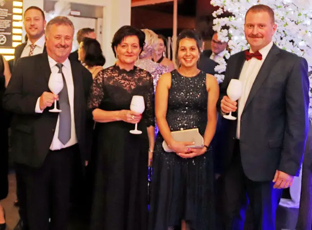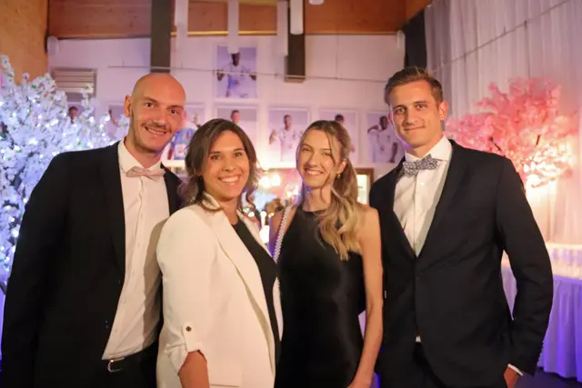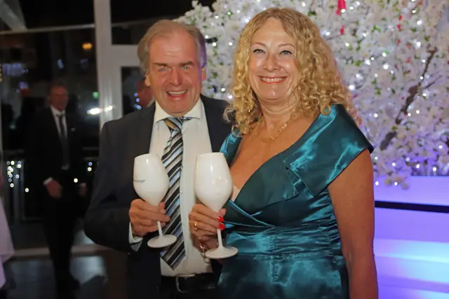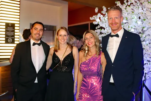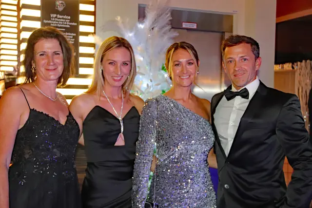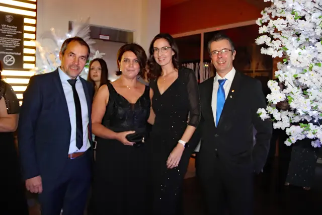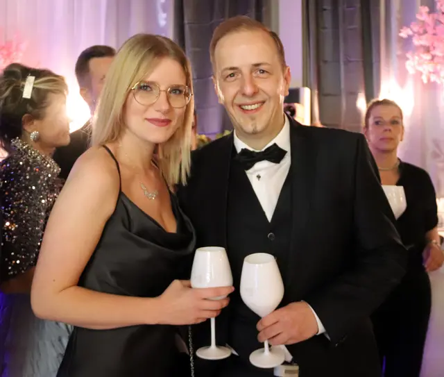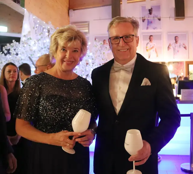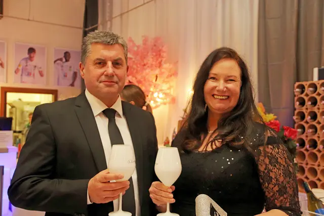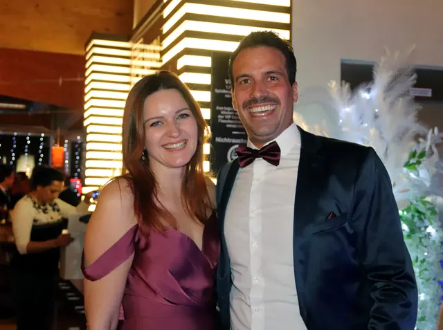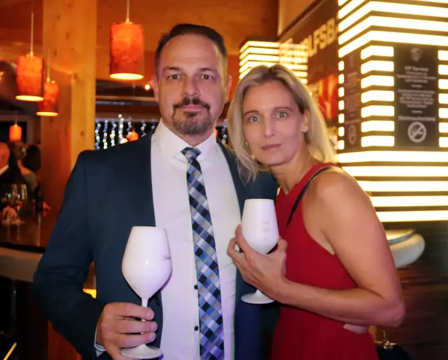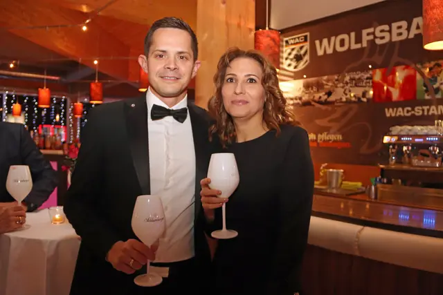Bei dieser Redoute stimmte wieder einmal mehr einfach alles. Die VIP-Lounge von Sona Nastl war bis auf den letzten Meter mit Balltigern, vornehmlich in den Vereinsfarben Schwarz-Weiß gehalten, besetzt. Dies freute natürlich den Hausherren WAC-Präsident Dietmar Riegler und seine charmante Gattin Waltraud, die die nicht enden wollende Gästeschar, unter ihnen zahlreiche Spitzen der heimischen Wirtschaft, Sport und der Kultur, herzlich begrüßte. Der Aufgang in die herrlich dekorierte VIP-Lounge erwies sich als wahre Feststiege. Natürlich gab es jede Menge an Ballartisten, diesmal im wahrsten Sinn des Wortes "aufgemascherlt" und angeführt von ihrem Kapitän Dominik Baumgartner zu sehen. Auch die Trainerriege, an der Spitze mit dem neuen Trainer Ismail Atalan machte ihre Aufwartung. Sehr viel zum Gelingen der Redoute trug eine glänzend disponierte Casino-Band bei, die in allen Bereichen voll und ganz punktete. Nichts anbrennen ließ jedenfalls auch nicht das großartig agierender Team in der Disco. Unter den zahlreichen Gästen auch u.a. Stadtpfarrer Christoph Kranitzky, Szene Gastronom Pierre Fritzl, Steuerberater Max Pulsinger, VELOX-Chef Günther Leopold, WIRO-Boss Alfred Rothleitner, dieTop-Fotografen Ramona Steiner, sowie Ralf und Elisabeth Zimmermann, und Rauchfangkehreremeister Hannes Winzely, Die kulinarischen Höhenflüge aus der Küche von Küchenchef Christian Brander, edelste Tröpferl vom Feinsten und vor allem ein sehr kompetentes, "blitzsauberes" und freundliches Service-Team ließen den Abend zu einem Erlebnis werden.