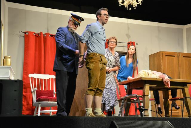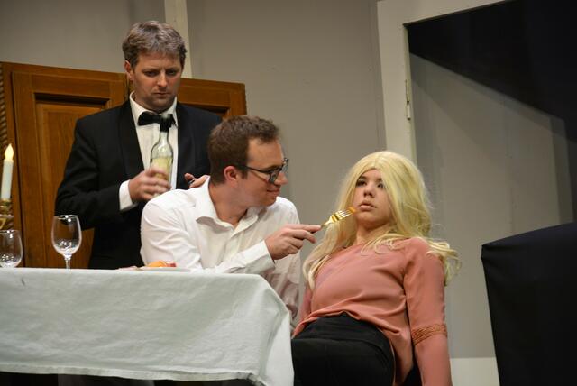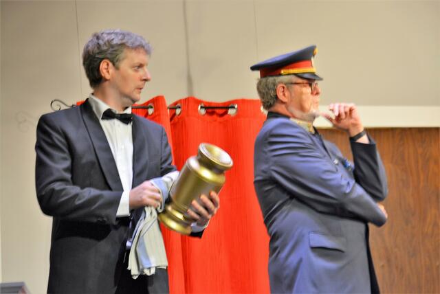 „The LEctos“ haben sich in den letzten Jahren voll in der Theaterszene etabliert. Die Fangemeinde wird immer größer und so war auch das Stadttheater bei der Premiere bestens besucht. Ohne allzu viel vom Inhalt zu verraten und die Spannung zu nehmen, sei doch gesagt, es geht bei „Leichen wissen mehr“ ungemein turbulent und umtriebig zu. Eine intrigante Gräfin, der geplagte Diener, ein verhinderter Hochzeiter, der sein Mäusezähnchen und Zuckerschnäuzchen umgarnt, eine Angebetete, die wiederum mit dem Geist in der Urne kommunizieren will, eine undurchsichtige Ärztin, ein dubioser Geschäftsfreund, ein gestresster Kommissar, eine Leiche und natürlich der traumatisierte Sohn, der von einem Spleen in den anderen fällt und meint, er sei Falco, HC Strache und Udo Jürgens.