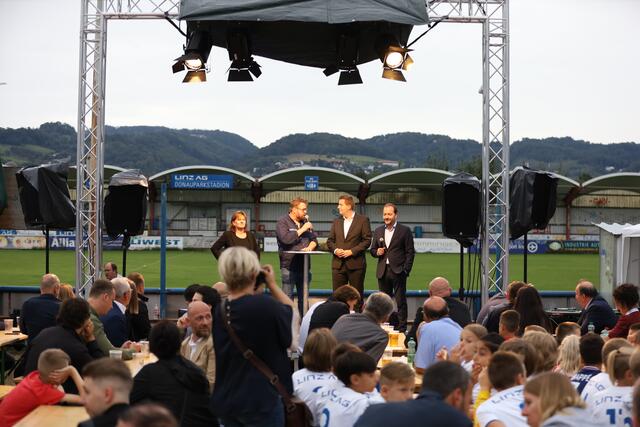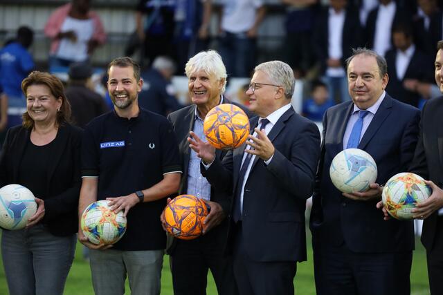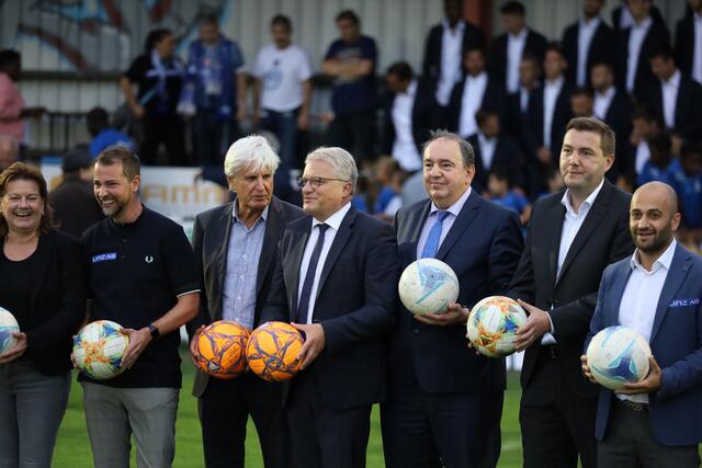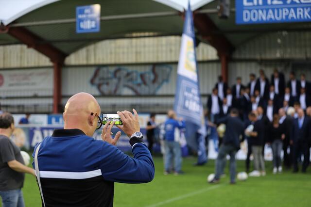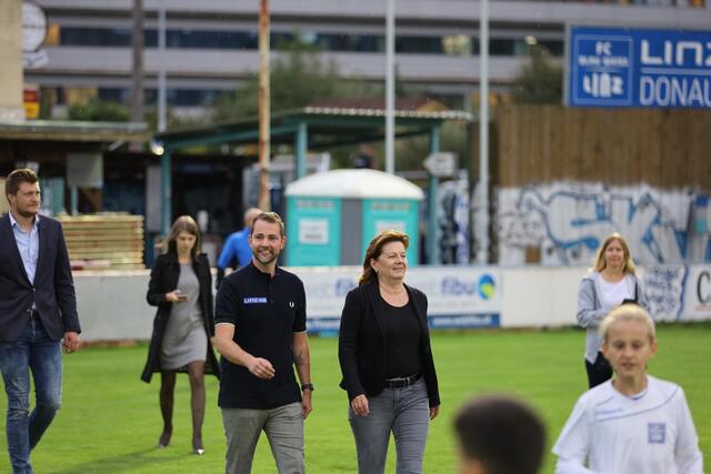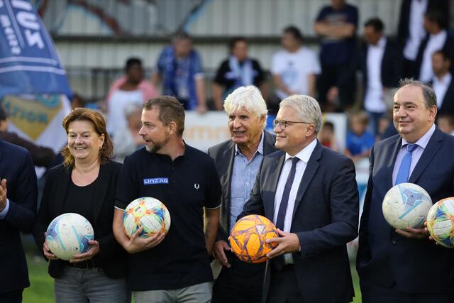 - Ankick zum Stadionbau: Bürgermeister Klaus Luger (Mitte) spielte den Auftakt-Pass zum Neubau des Donaupark-Stadions.