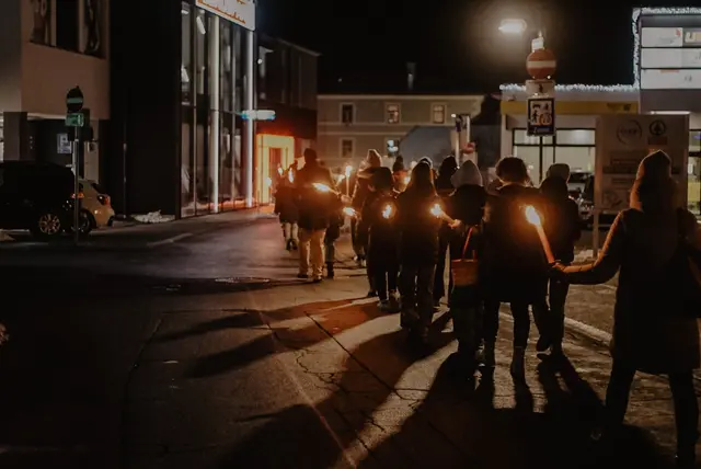 Im Anschluss setzte sich der Lichtermarsch vom Marktplatz aus in Bewegung und führte mit Fackeln durch das Tamsweger Ortszentrum. Der Demonstrationszug endete im Hatheyerhaus, den Räumlichkeiten der Lungauer Kulturvereinigung. Dort erwarteten die Teilnehmenden warme Verpflegung sowie die Möglichkeit zum Austausch und einem gemeinsamen, solidarischen Ausklang.