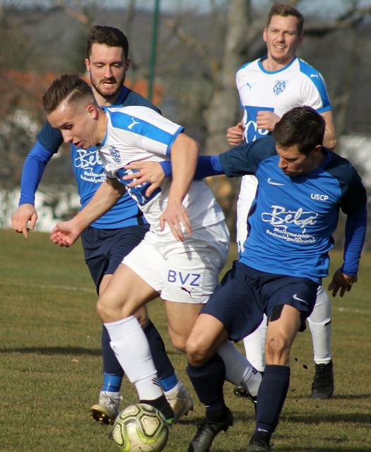 Den wacheren Eindruck in der Anfangsphase machten die Hausherren, die früh in der Partie für ein erstes Ausrufezeichen sorgten und durch Zoltan Varga (6.) rasch in Führung gingen. Die Schonfrist für den Liga-4. USC Pilgersdorf, der als Titelanwärter gehandelt wird, war vorbei und dieser war gewarnt. Quasi mit dem Pausenpfiff glückte der Gästeelf um Trainer Stefan Pürrer nach einem Eckball und Verwirrung im heimischen Strafraum der 1:1-Ausgleich durch Matthias Beiglböck (45.+2.). Es bahnte sich eine Annäherung der im Herbst gezeigten Leistungen an. Doch es war ein Trugschluss.