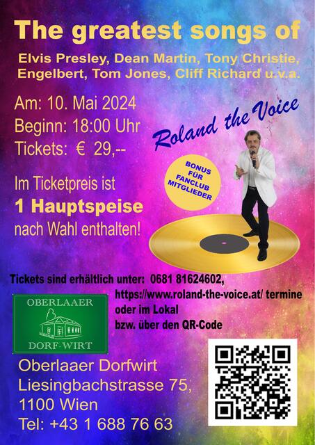 Wir präsentieren unser jährliches "Vorweihnachtliches ELVIS - SPECIAL" mit Roland the Voice einen Tag vor dem 1. Advent. Diese Show bietet die schönsten Songs und Weihnachtslieder von Elvis, live interpretiert von Roland the Voice. Heuer findet diese Veranstaltung am 29. November, um 18:00 Uhr im beheizten Wintergarten des "HOPFEN & MALZ" in der Kaiserebersdorfer-Straße 277, in 1110 Wien statt. Einlass ist ab 17:00 Uhr. Tickets sind ausschließlich unter 0681 81624602 oder Online...