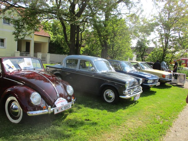 Bei Kaiserwetter folgten viele Oldtimerbesitzer dem Ruf der Veranstalter. Es konnten neben den Clubausstellungen des ÖGHK (Österreichische Gesellschaft für historisches Kraftfahrwesen ) und des Ford Classic Club Austria viele Traktoren, Motorräder, Mopeds, Personen- und Lastkraftwagen die schon fast von unseren Straßen verschwunden sind, bewundert werden. Um die Mittagszeit starten die einzelnen Teilnehmergruppen zu einer eigenen Ausfahrt durch die Weinorte bzw. Kellergassen in der Umgebung. Die Freiwillige Feuerwehr Pillichsdorf sorgte für Speis und Trank.