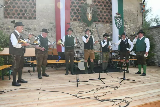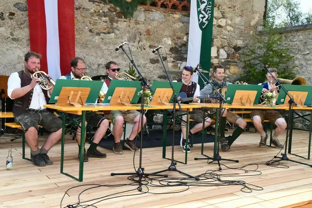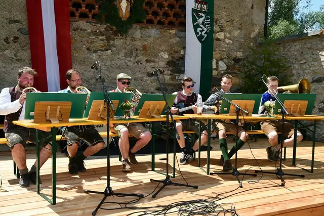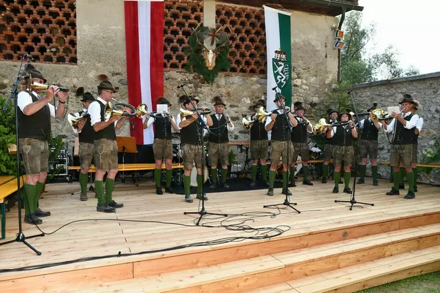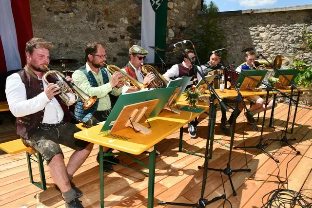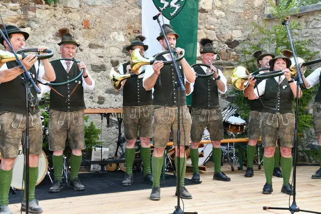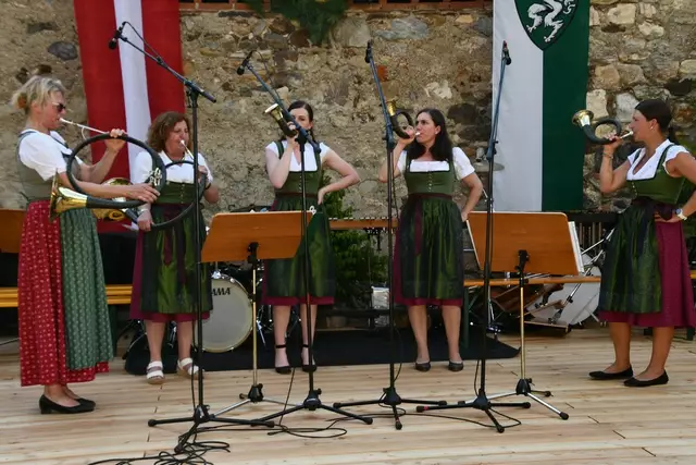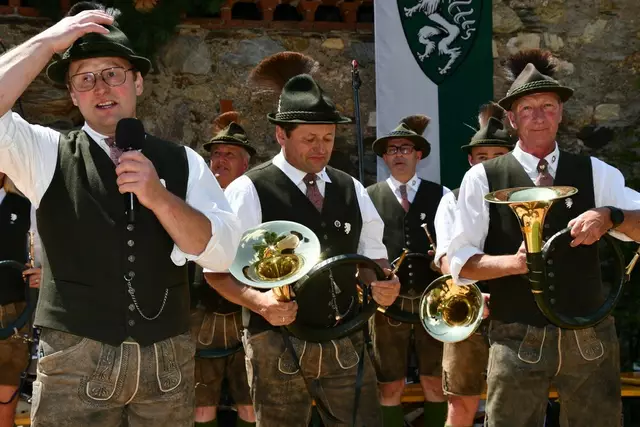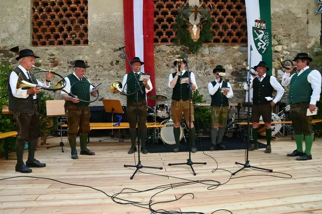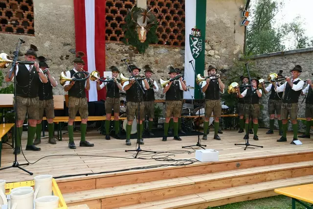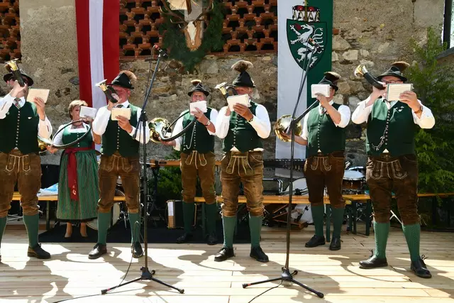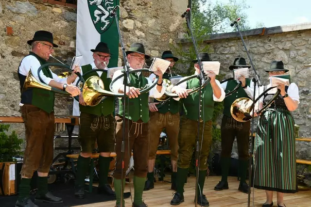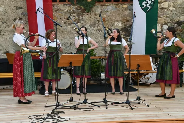 Der Schlosshof auf Schloss Rothenfels war für die Jagdhornbläsergruppe Oberwölz der Ort zum Feiern am vergangenen Samstagnachmittag.