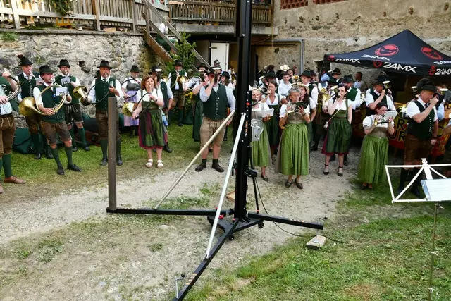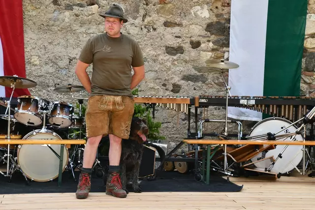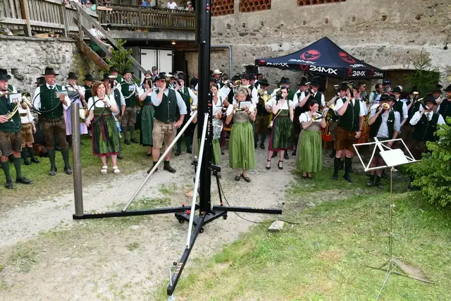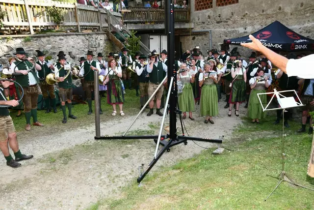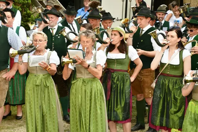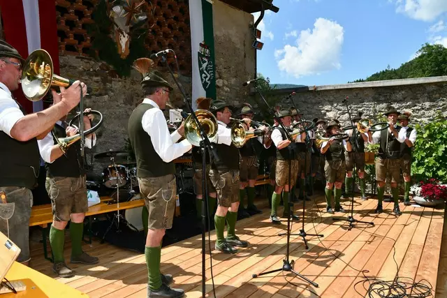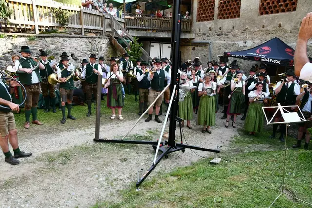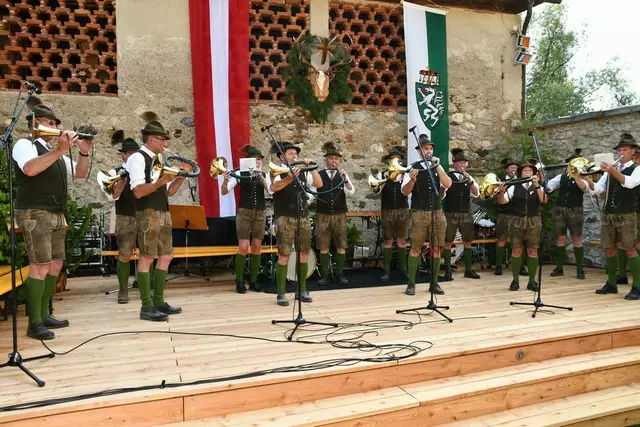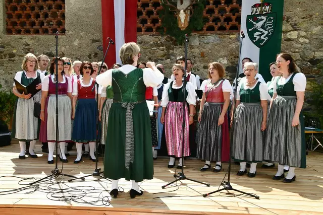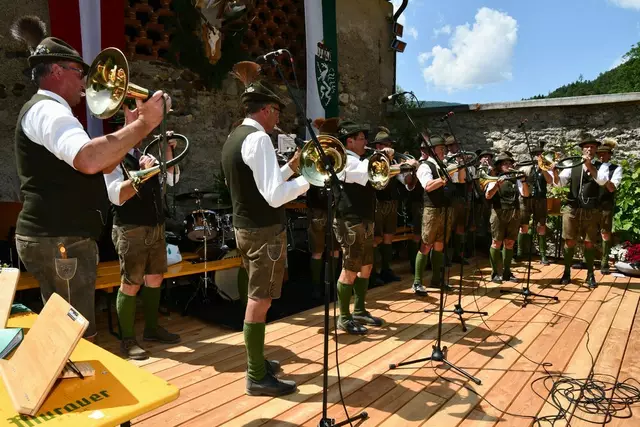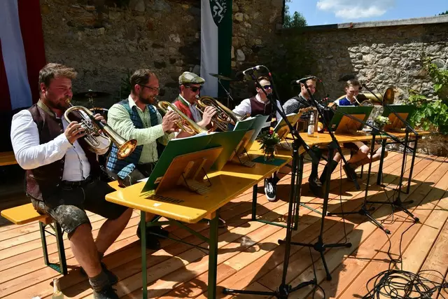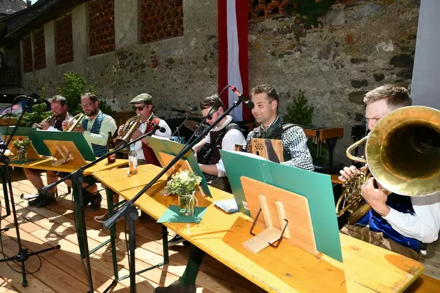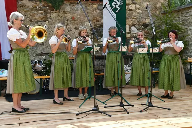 Der Schlosshof auf Schloss Rothenfels war für die Jagdhornbläsergruppe Oberwölz der Ort zum Feiern am vergangenen Samstagnachmittag.