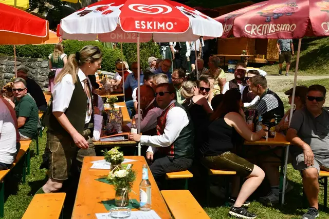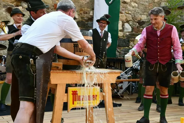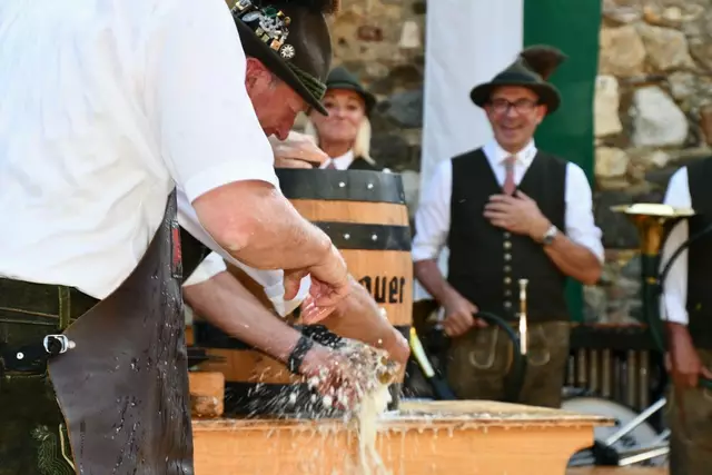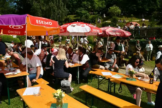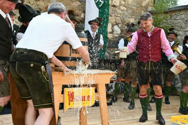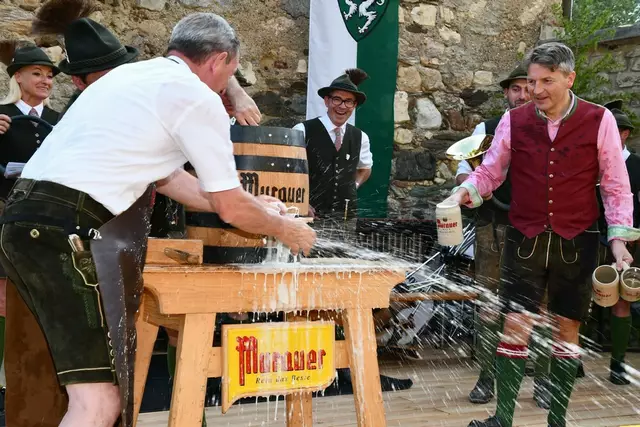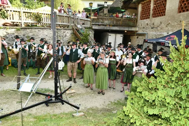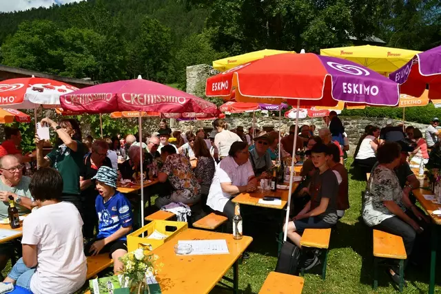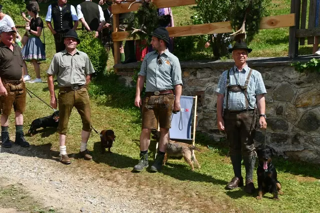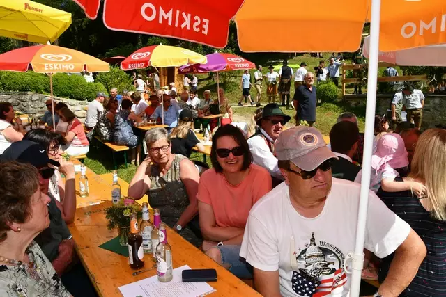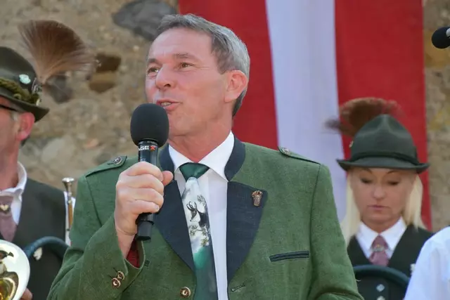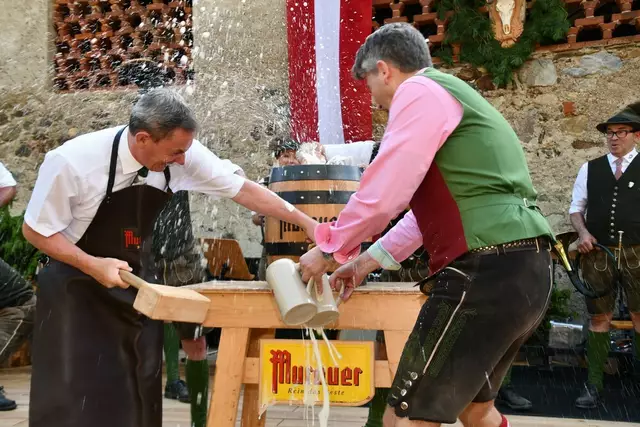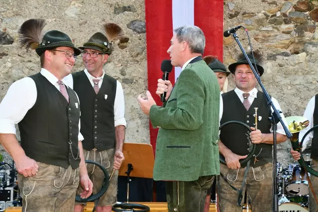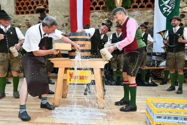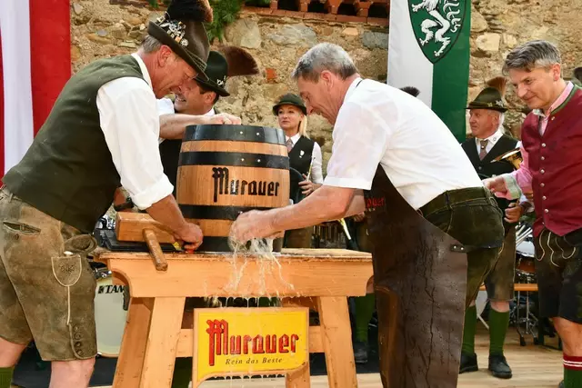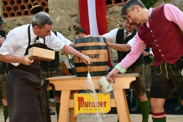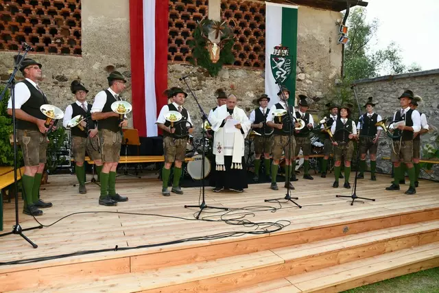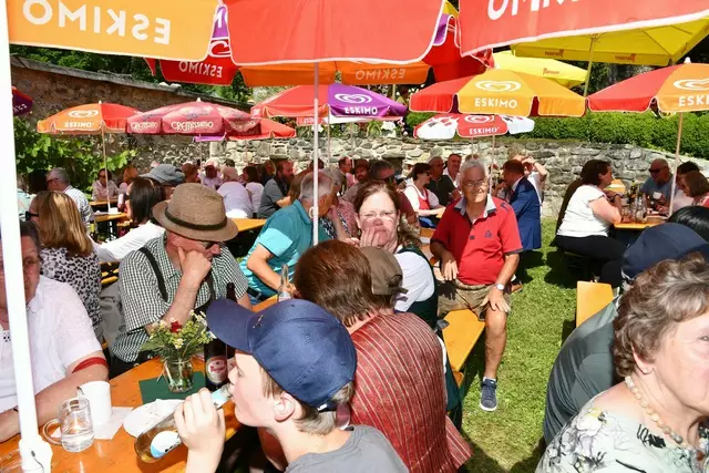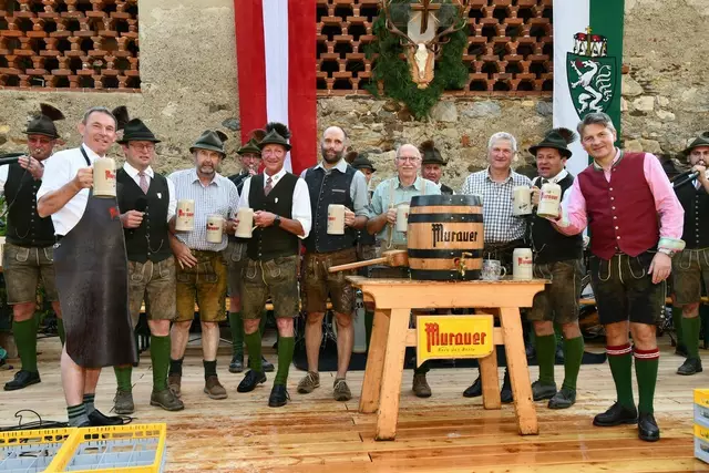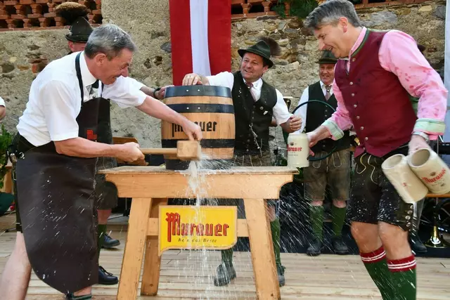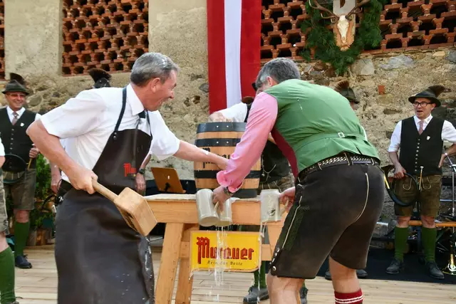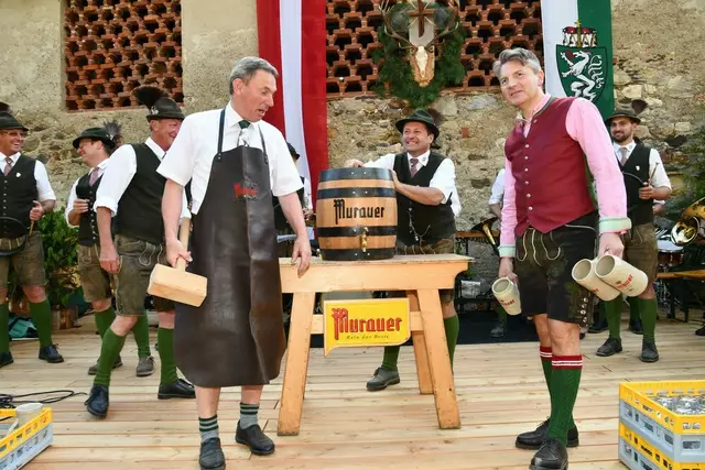 Bgm. Hannes Schmidhofer würdigte in seiner Ansprache die gelebte Tradition und Miteinander der Jagdhornbläsergruppe mit dem Jagdschutzverein und der gesamten Gesellschaft, sie sind ein wesentlicher Teil gelebter Kultur in Oberwölz und darüber hinaus. Vikar Wojciech Zapior erteilte mit einer Andacht den kirchlichen Segen für die großer Feiergemeinschaft. Viel Dank wurden auch der Familie Steiner als Gastgeber im Schlosshof auf Schloss Rothenfels ausgesprochen. Abschließender Höhepunkt der Jubiläumsfeier war Bieranstich mit Bgm. Hannes Schmidhofer und Bgm. Albert Brunner sowie in den Nachtstunden das Sonnwendfeuer auf Schloss Rothenfels.