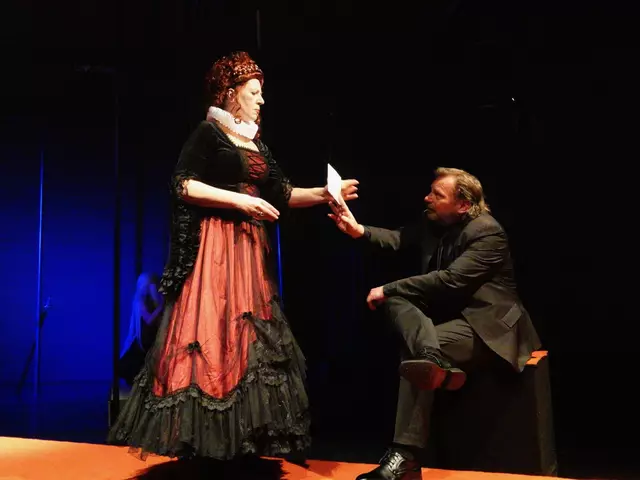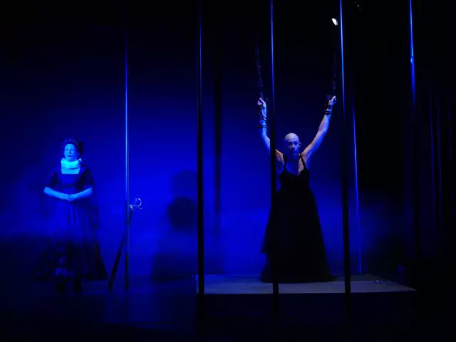 Im Reigen der jährlich im THEO-Spielplan gezeigten Klassiker setzt Regisseur Peter Faßhuber diesmal auf Friedrich Schiller. „Maria Stuart & Elisabeth" als von Philipp Sonntag erarbeitetes Konzentrat wurde bei der Premiere am 9. April `25 zum Theatererlebnis. Peter Faßhuber hat das historische Drama um eine gnadenlose, eifersuchts- und machtgetriebene Königinnen-Abrechnung in eine moderne Bühnenfassung, eine Dreiecksbeziehung montiert. Erzeugt in einem Bühnenbild mit ansteigender Rampe und ein...